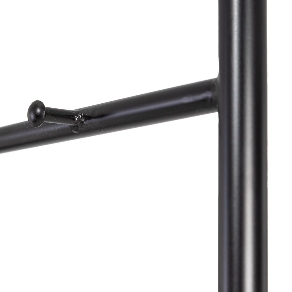 Structura metalică subțire și rezistentă contrastează elegant cu detaliile calde din lemn de cauciuc, oferind un design contemporan care se integrează perfect în decorurile industriale sau minimaliste. Este un element versatil și practic, potrivit atât pentru locuințe, cât și pentru spații comerciale sau recepții.