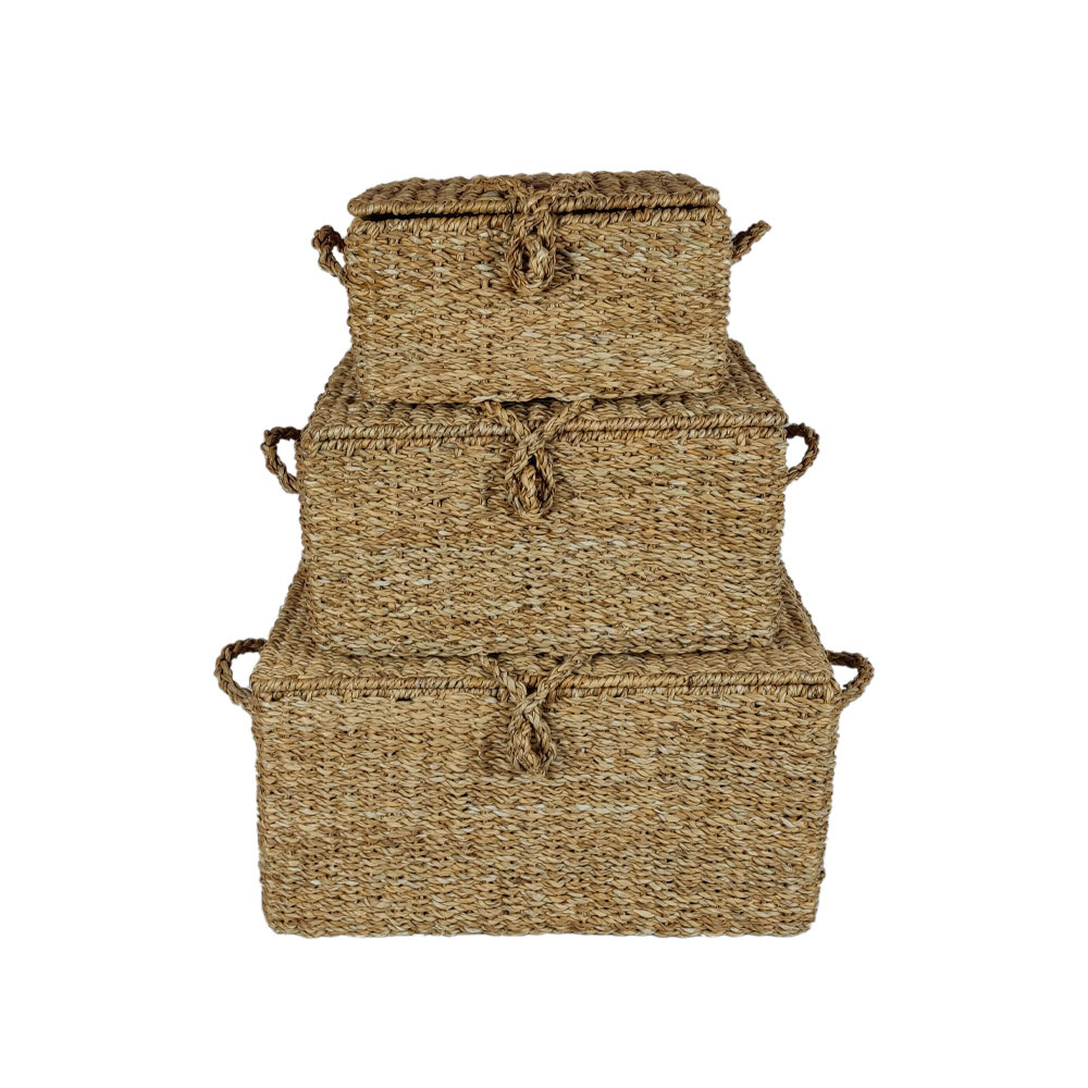 Set 3 cutii de depozitare cu structură metalică și împletitură din iarbă de mare stil modern ALMAR BOX 50x40x30 cm