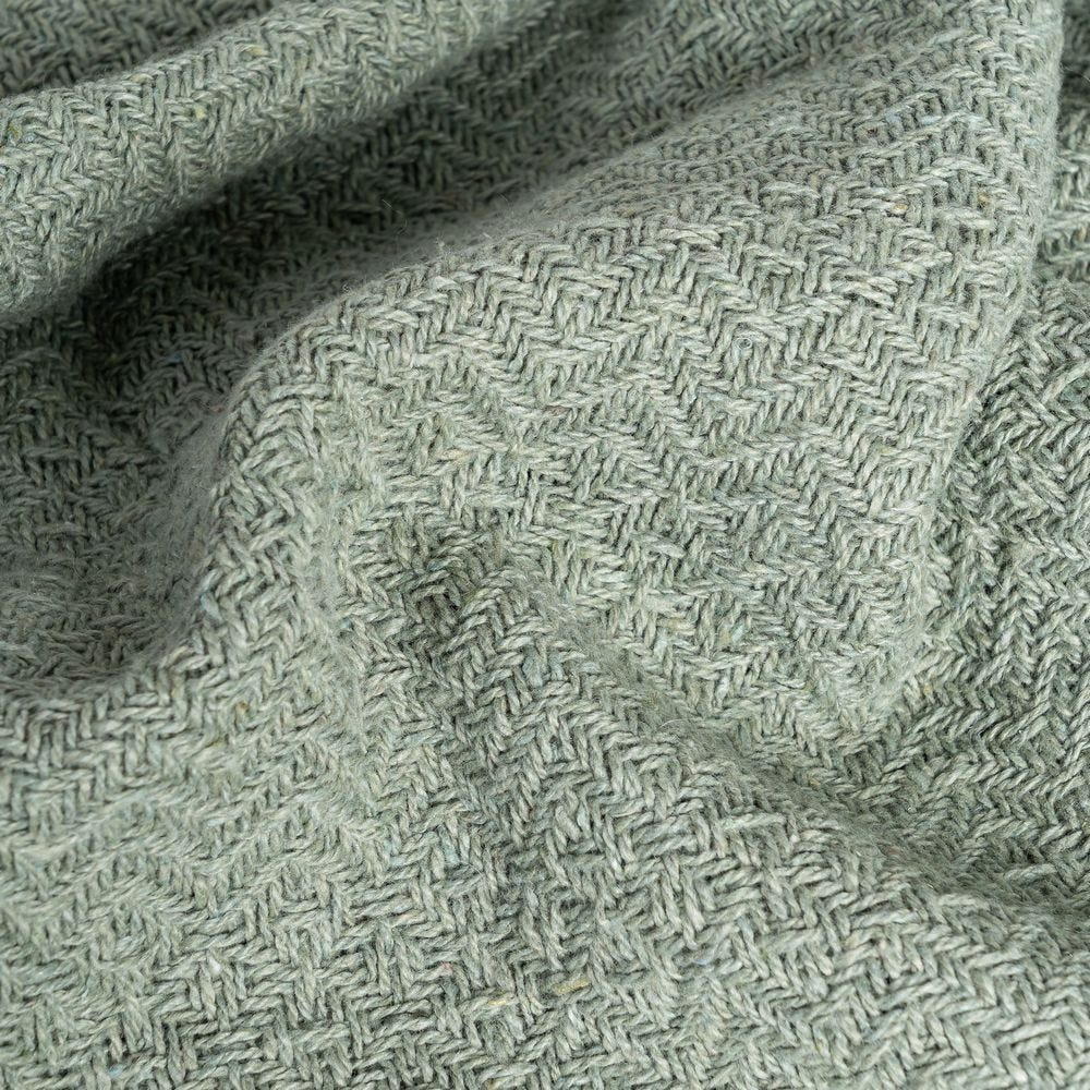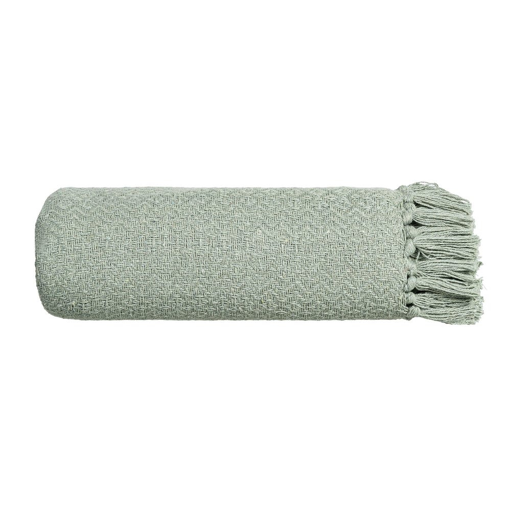 IXIA Pătură verde salvie din bumbac și stofă cu textură țesută și franjuri 180 x 270 cm