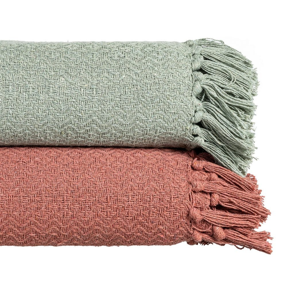 Pătură verde salvie din bumbac și stofă cu textură țesută și franjuri 180 x 270 cm