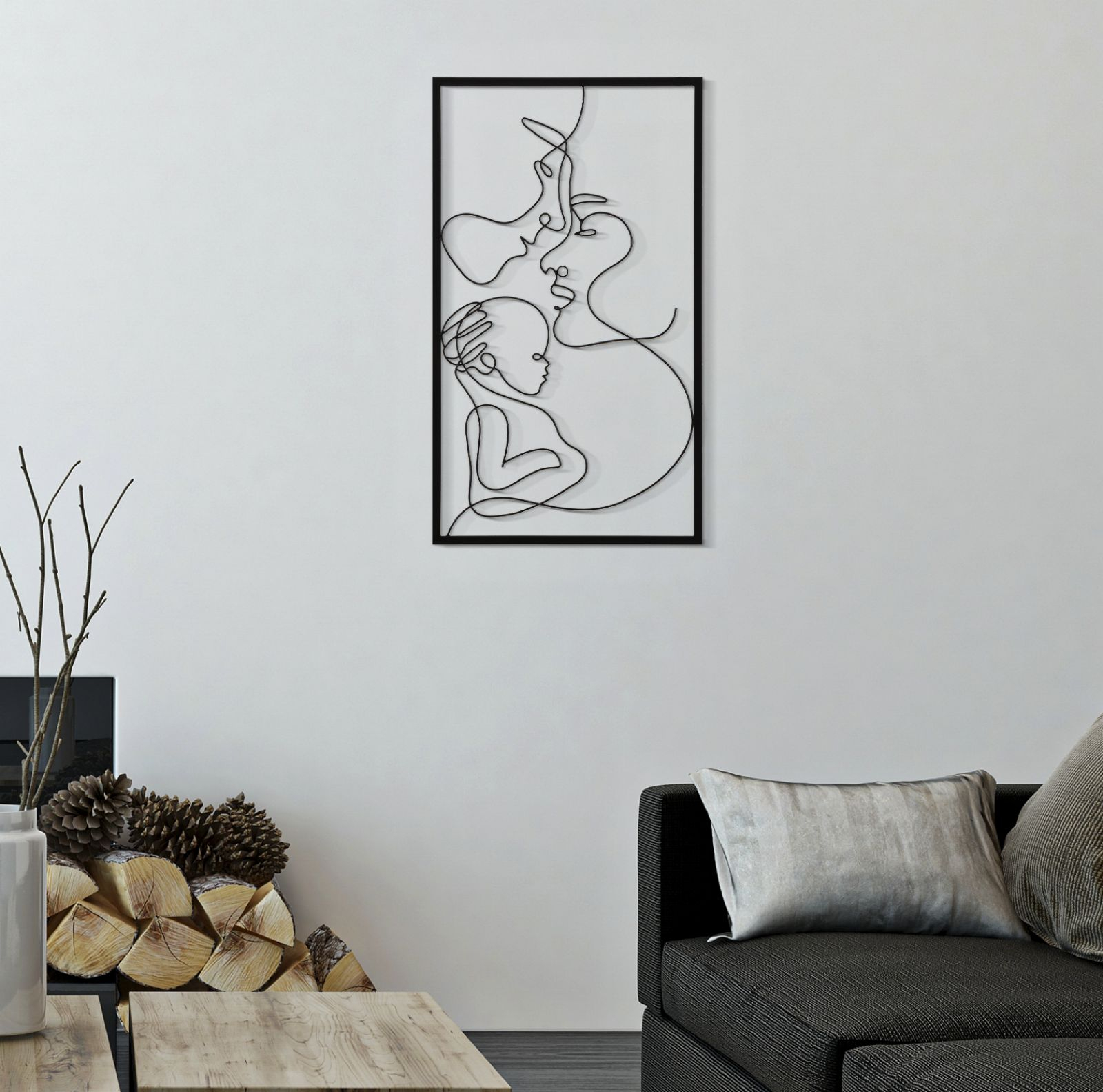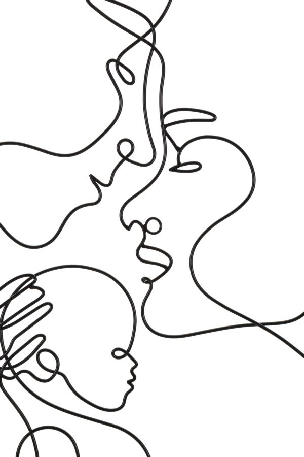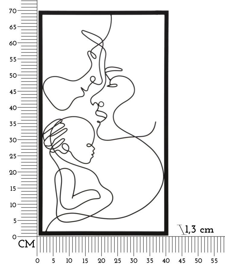 Celebrează complexitatea și frumusețea conexiunilor familiale cu acest panou decorativ din metal, care înfățișează stilizat chipurile a doi părinți și ale copilului lor. Panoul măsoară 40 cm în lățime și 70 cm în înălțime, fiind ideal pentru a adăuga o dimensiune emoțională și artistică în orice spațiu. Designul minimalist, dar expresiv, captează esența legăturii părintești într-o manieră modernă și elegantă, făcându-l un accent vizual remarcabil în orice cameră, fie că este plasat într-un living, birou sau dormitor. Această decoratiune de perete metalică aduce un omagiu iubirii și unității familiale, inspirând căldură și contemplare.