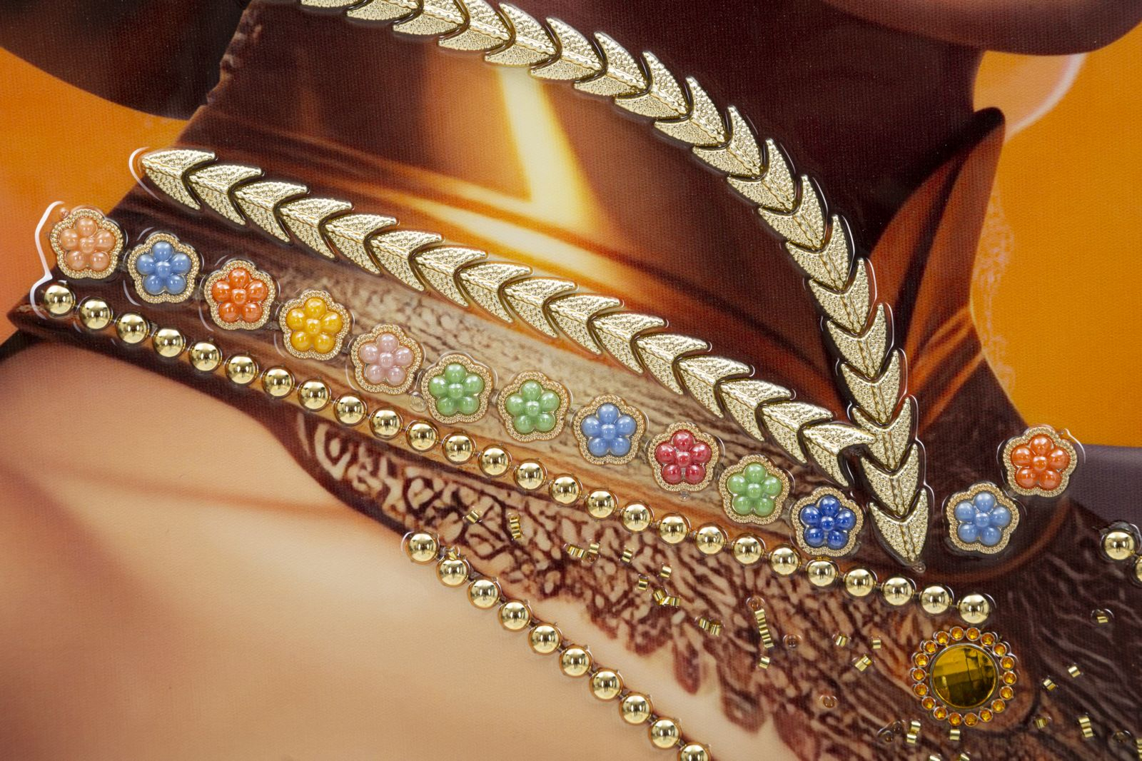 Acest tablou pe canvas cu dimensiuni de 72 cm lățime și 107 cm înălțime prezintă un portret impresionant al unei femei împodobite cu accesorii tradiționale. Ilustrația vibrantă captează atenția prin culorile sale puternice și detalii minuțioase, inclusiv micile perluțe aplicate pe turban și bijuterii, ce adaugă un plus de eleganță și rafinament. Tabloul este ideal pentru a fi expus în spații decorate în stil oriental sau etnic, aducând un accent de autenticitate și sofisticare. Poate fi plasat într-un loc central al sufrageriei sau într-un birou elegant, transformând orice încăpere într-un spațiu captivant și plin de caracter.
