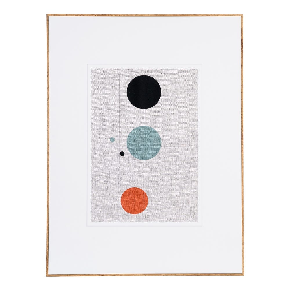 Acest set de 2 tablouri decorative abstracte propune un design modern bazat pe forme geometrice circulare și linii fine care creează un echilibru vizual clar și contemporan. Paleta cromatică combină tonuri neutre cu accente de negru verde mentă și portocaliu pentru un efect sofisticat și actual.