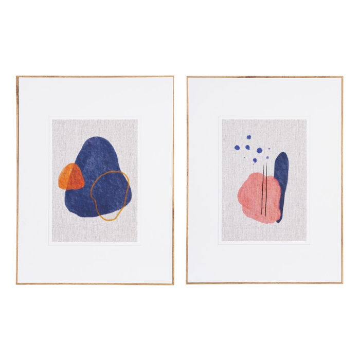 Set 2 tablouri decorative abstracte cu forme organice alb albastru și terracotta din MDF imprimat cu ramă culoare fag dimensiune 60 x 80 cm