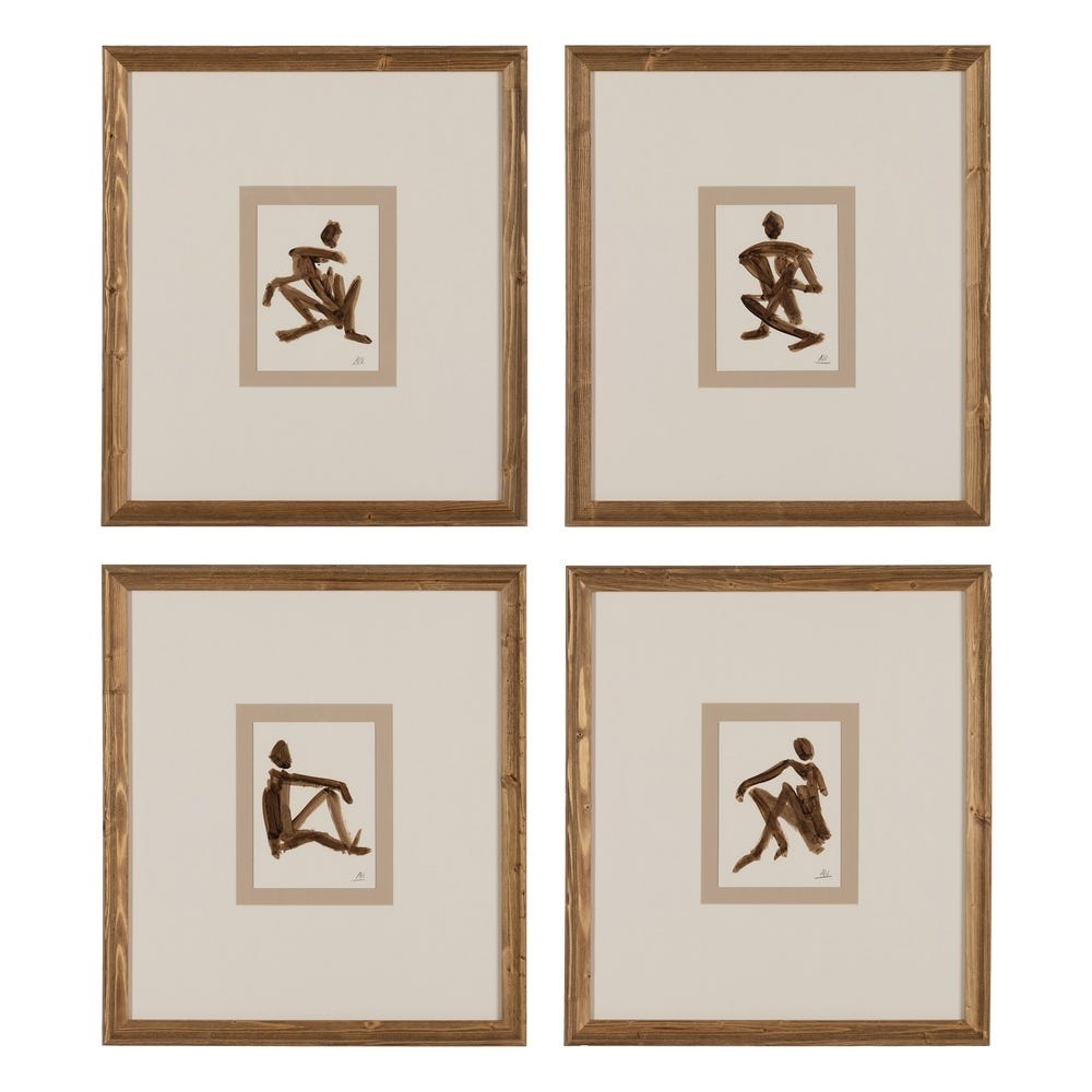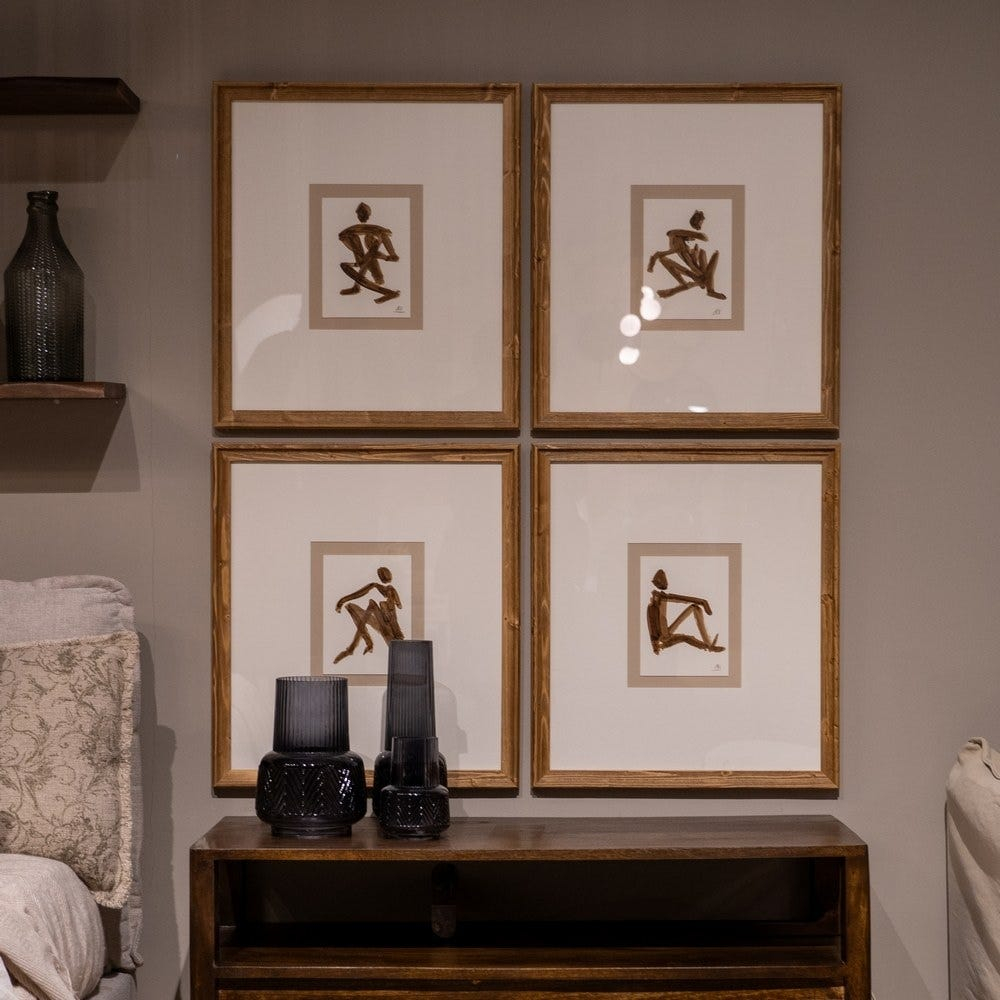 Un omagiu adus formei umane în esența ei artistică, acest set de 4 tablouri abstracte pictate manual surprinde siluete expresive într-un stil minimalist, cald și natural. Tonurile de maro ciocolatiu și fundalul deschis pun în valoare fiecare contur, într-o compoziție rafinată, dar relaxată. Ramele din lemn de ayous cu textură vizibilă și finisaj natural întregesc aspectul artizanal și autentic al fiecărei piese.