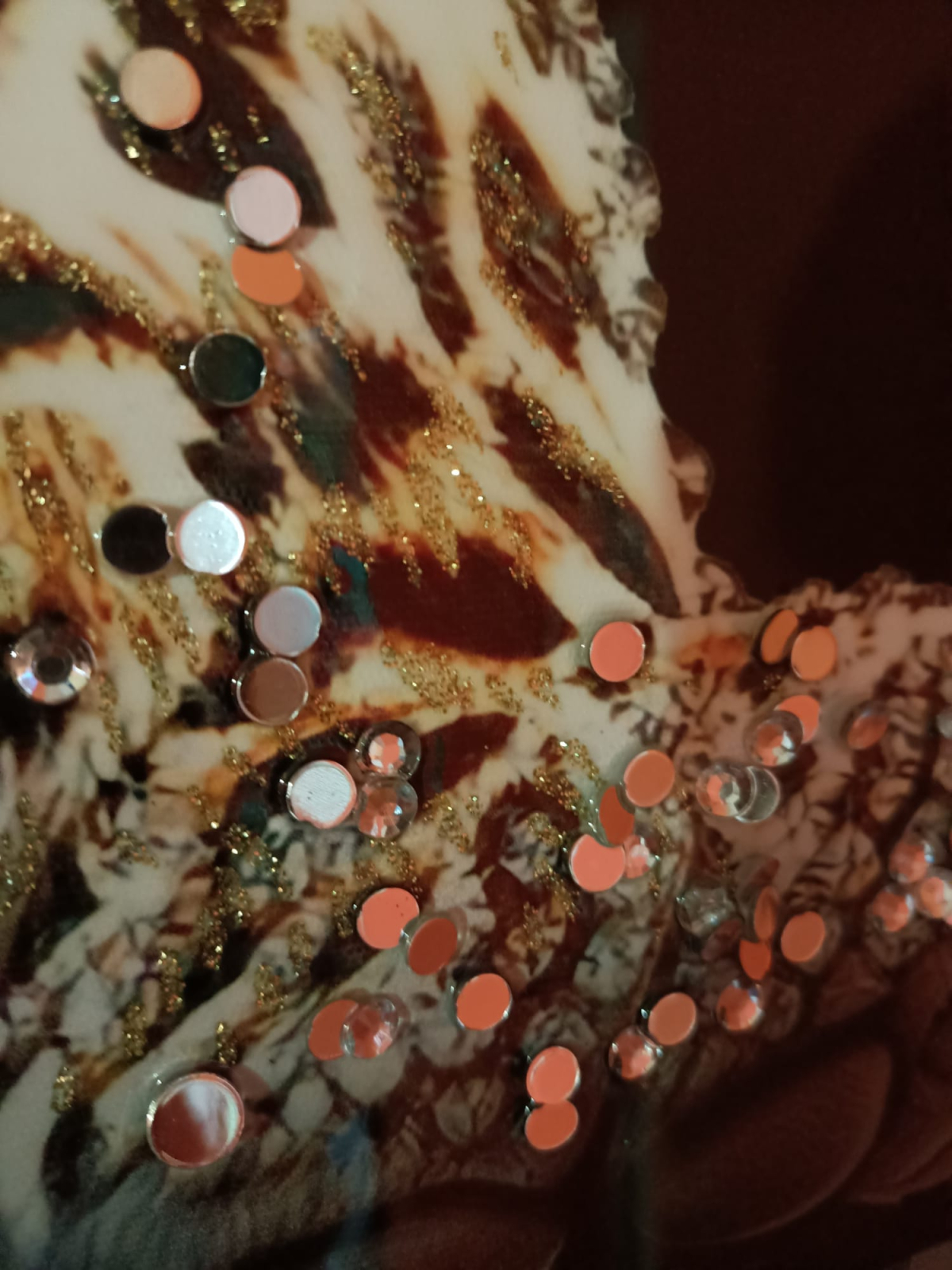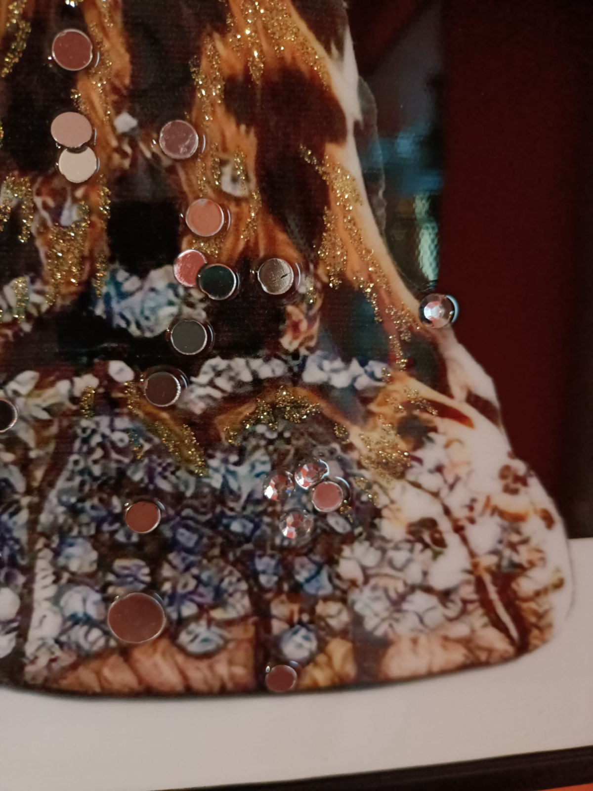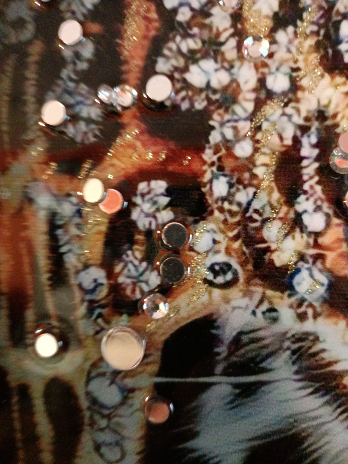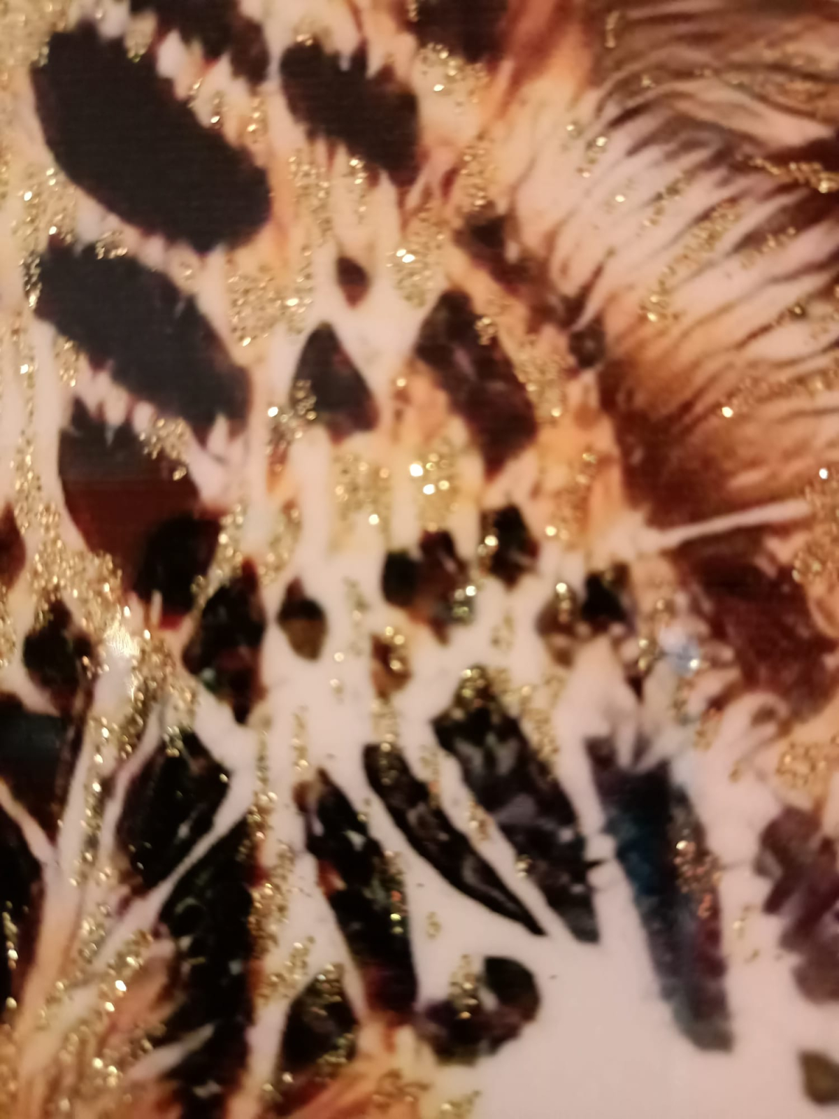Imaginea cu leopard și accentele decorative creează un contrast puternic și un efect vizual dinamic.