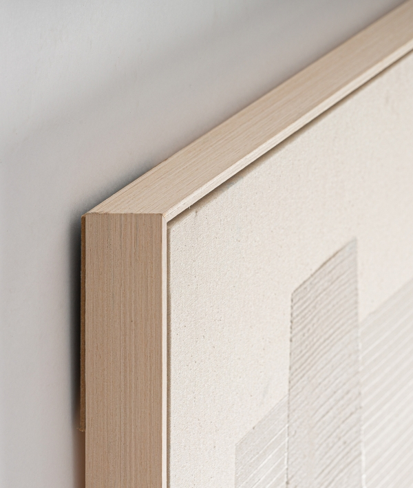 Textura lucrată manual și rama din lemn natural de pin conferă o notă artizanală, transformând tabloul într-un element decorativ sofisticat, care aduce căldură și volum peretelui.