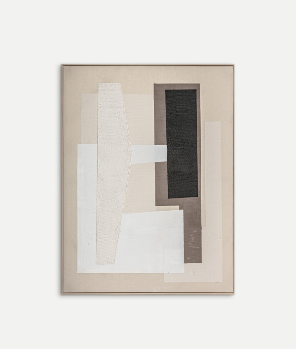 NEXO este o compoziție vizuală care evocă echilibrul și serenitatea prin formele sale geometrice stratificate și tonurile discrete. Contrastul dintre negrul intens și nuanțele calde de bej și alb creează o piesă versatilă, ideală pentru interioare minimaliste, spații de birou sau proiecte contract cu o estetică artistică.