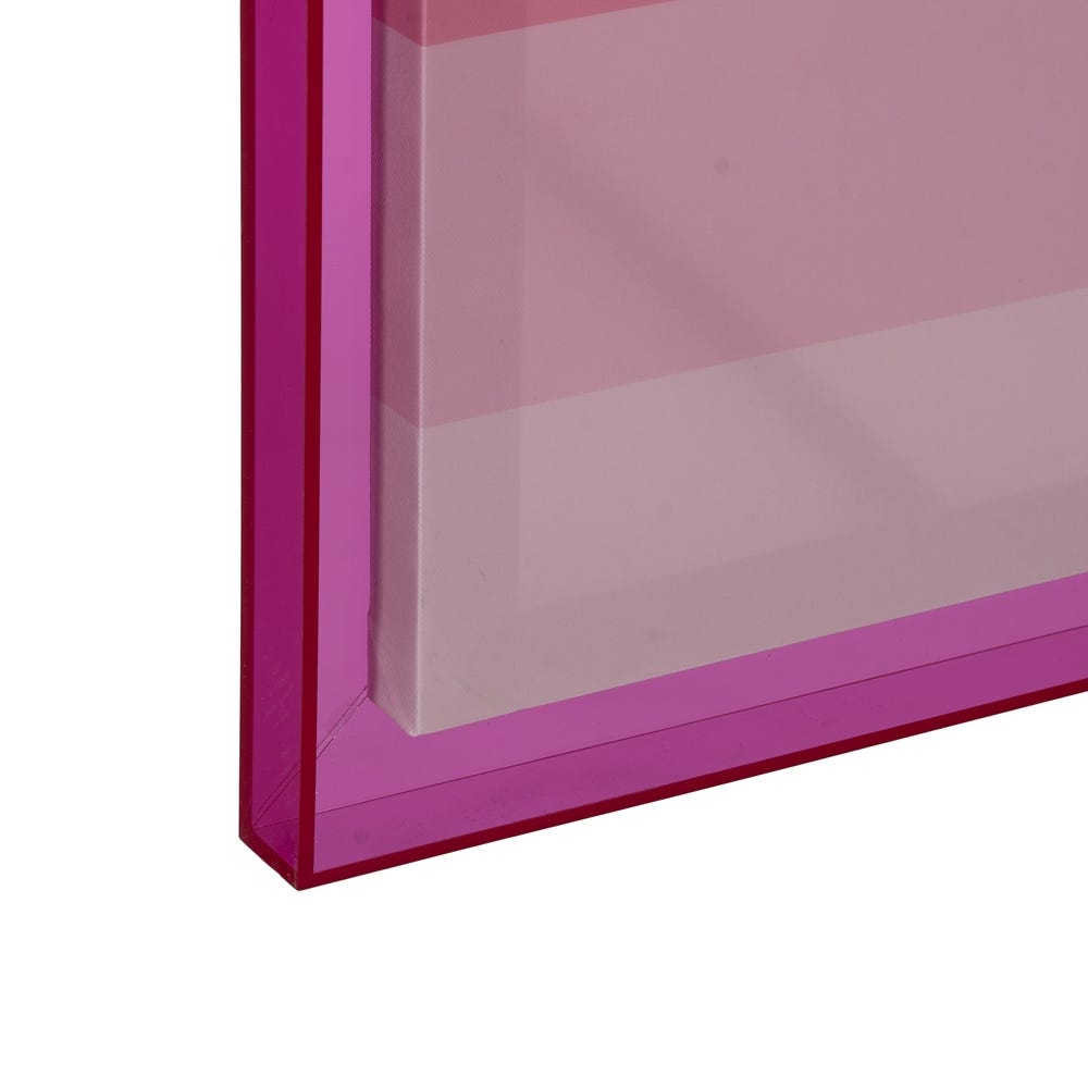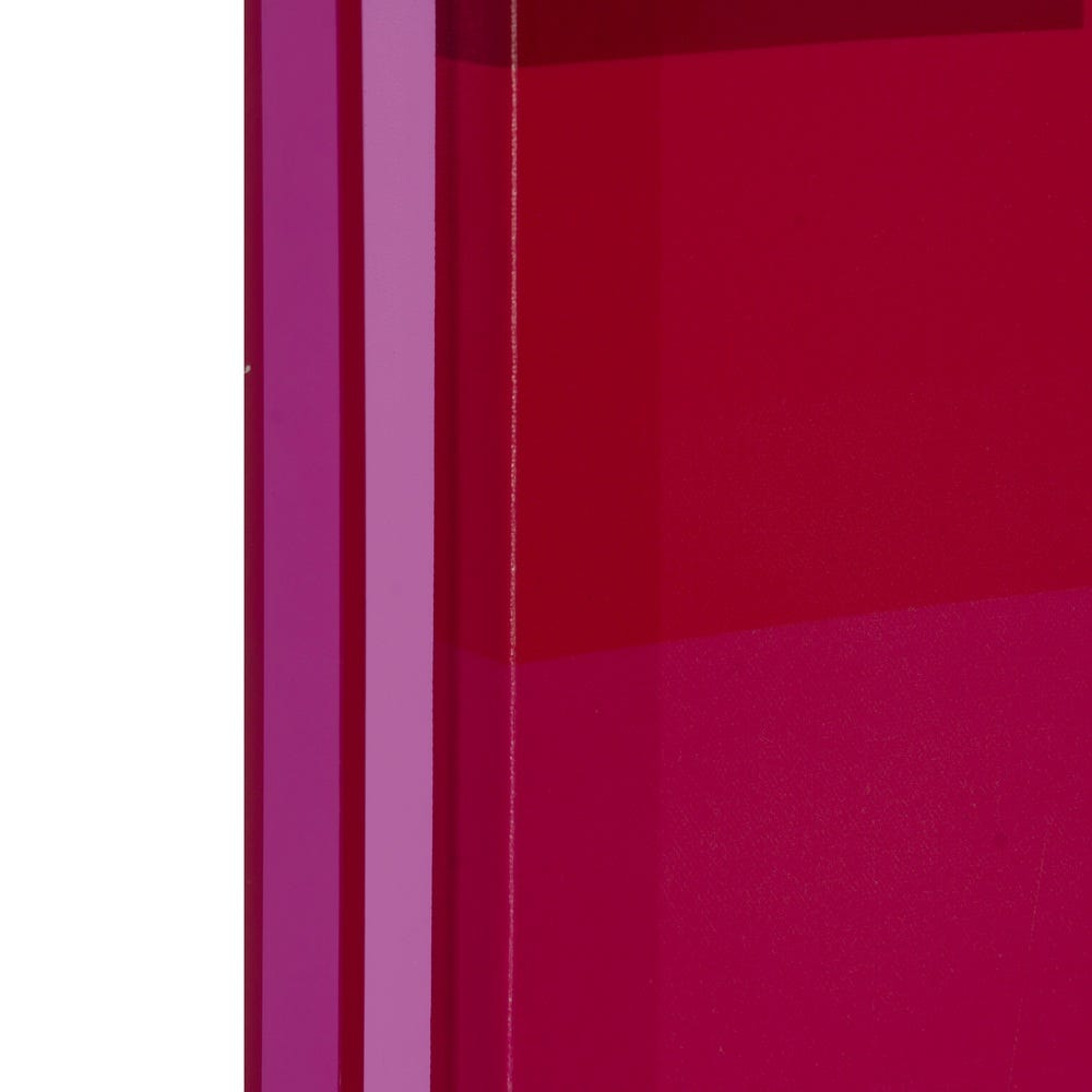 Acest tablou abstract decorativ mizeaza pe un joc vizual de treceri cromatice in nuante de roz – de la fucsia intens si rosu zmeura, pana la roz pudrat si nude deschis. Designul geometric, cu forme concentrice in degradee, creeaza un efect de adancime controlata si un punct focal vibrant in orice incapere. Rama acrilica roz, in aceeasi gama cromatica, confera unitate vizuala si un aer contemporan.
