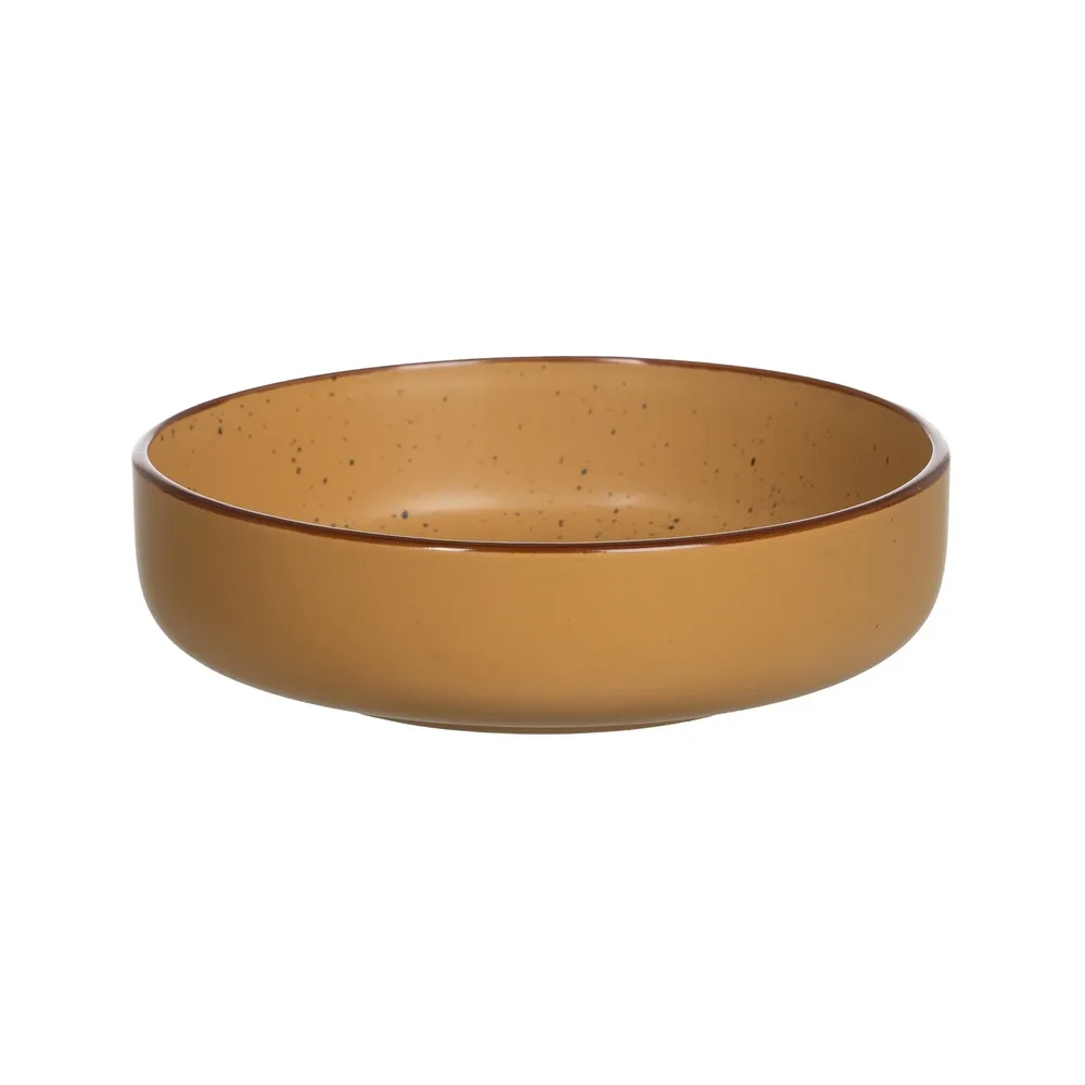 Set de 6 farfurii adânci ocru cu design elegant. Farfurii de toamnă perfecte pentru servirea supelor și pastelor. Compatibile cu mașina de spălat vase și cuptorul cu microunde.