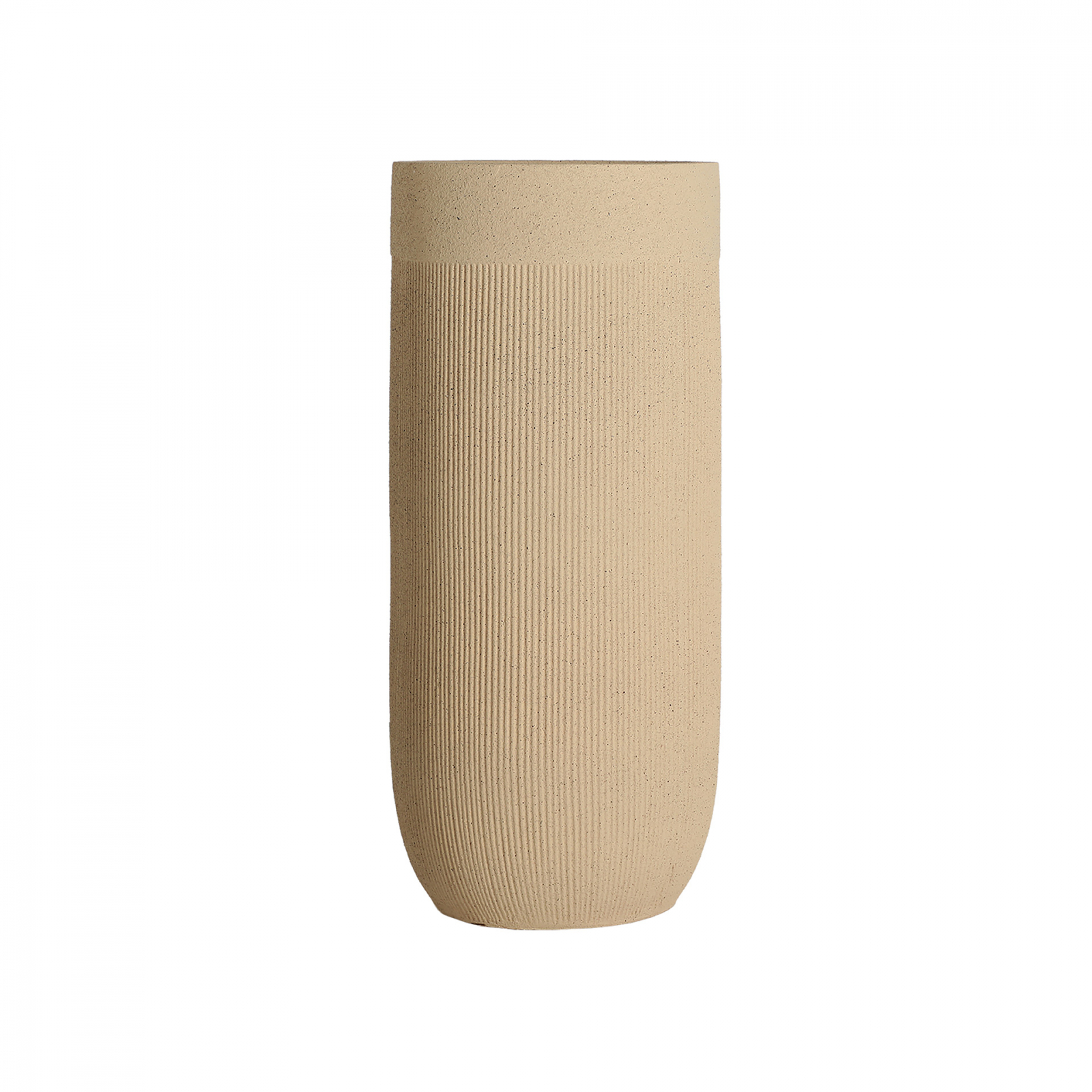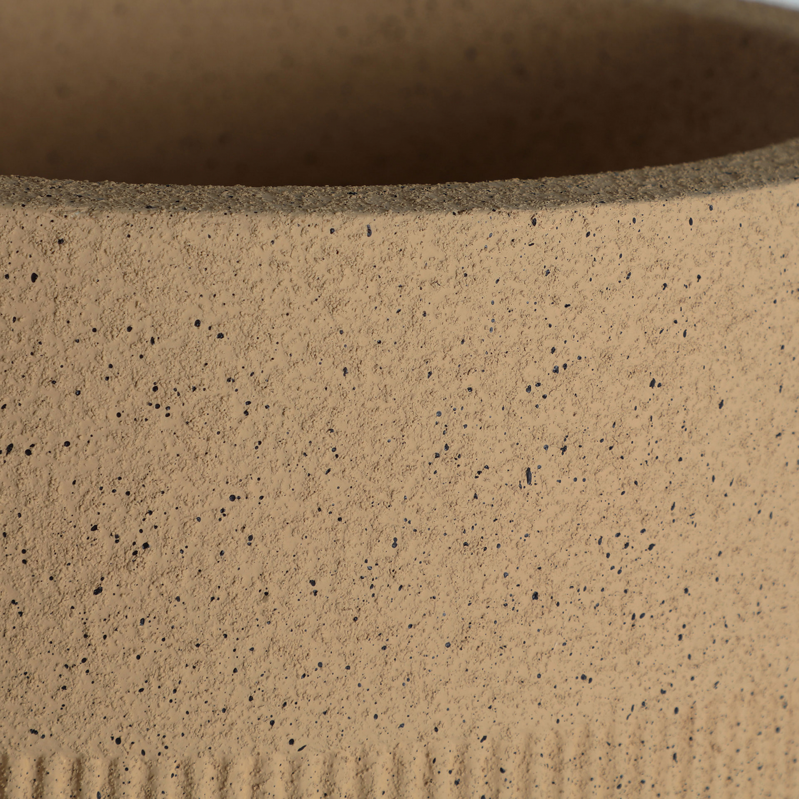 Cu un design esențial și o textură discretă cu striuri verticale, ghiveciul Kavan aduce o notă de echilibru și naturalețe în orice decor interior sau semi-exterior. Forma sa rotunjită și nuanța caldă de nisip creează o prezență decorativă calmă, ideală pentru plante înalte, aranjamente vegetale minimaliste sau spații de inspirație mediteraneană și wabi-sabi.