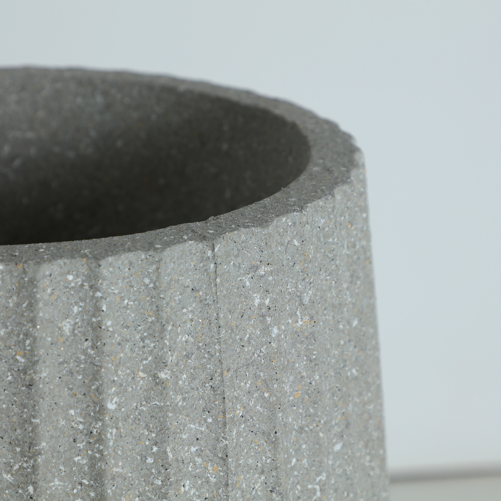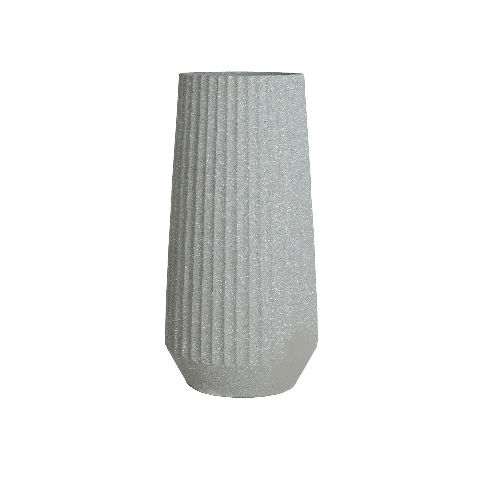 Textura verticală adâncă conferă obiectului un aer sculptural, iar silueta sa clară, inspirată de forme arhitecturale, se integrează perfect în interioare minimaliste, moderne sau japandi. Culoarea neutră îl face versatil, ușor de asociat cu plante decorative înalte sau aranjamente uscate.