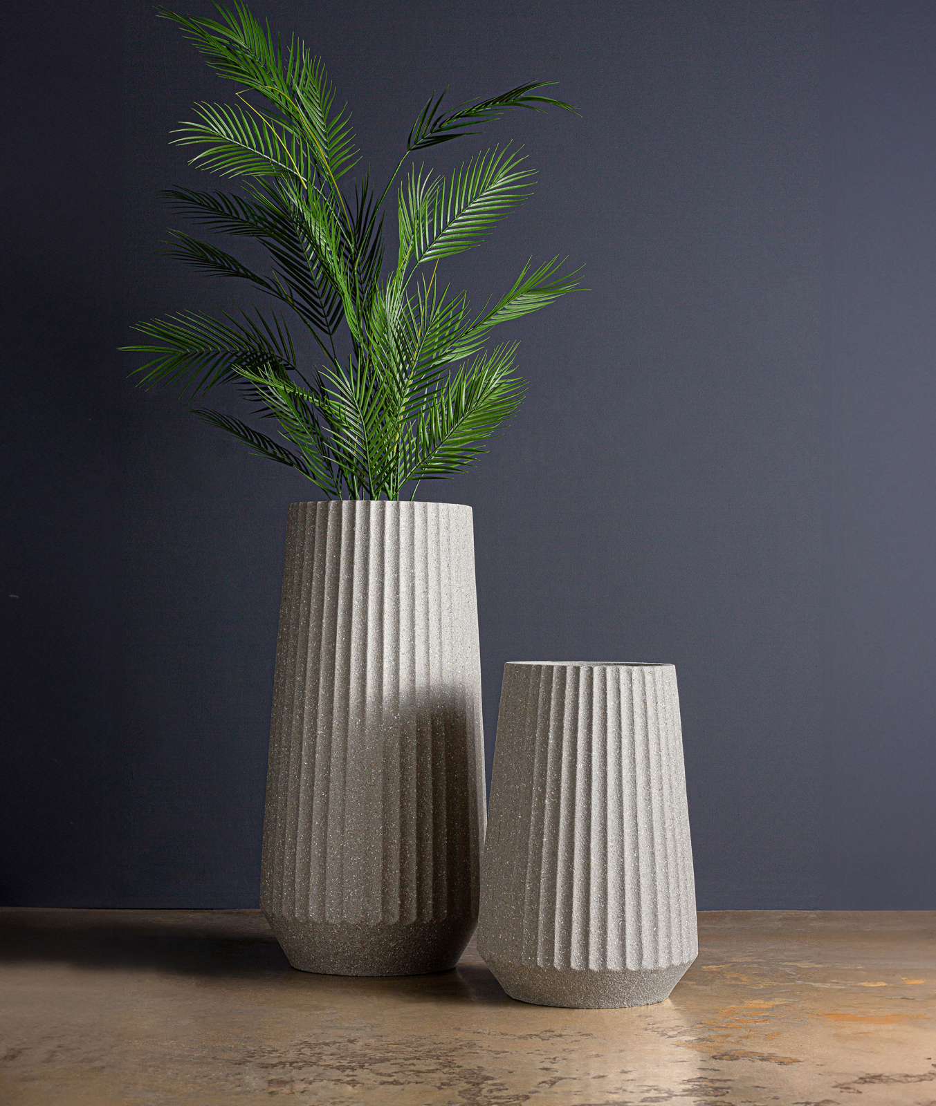 Elegant prin simplitate, ghiveciul Sanden se remarcă prin designul striat și forma conică alungită. Realizat din polirășină rezistentă, în tonuri de gri mineral, aduce echilibru și rafinament în orice spațiu interior decorat cu atenție la detalii.