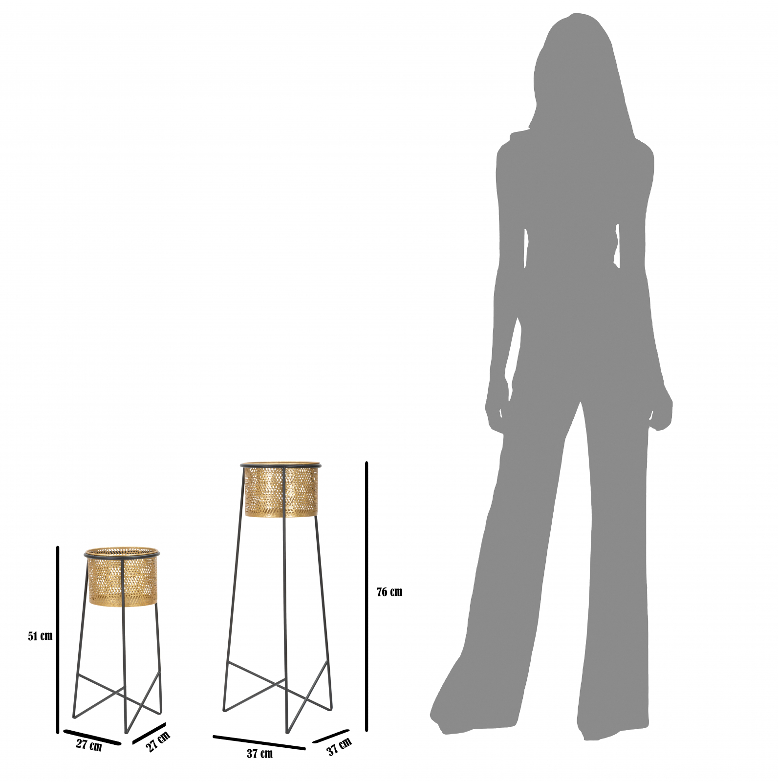 Set 2 suporturi flori din metal negru cu cosuri detasabile aurii.
