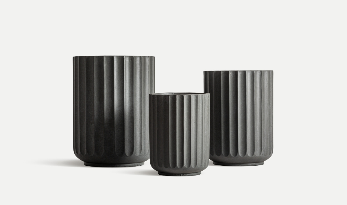 Aceste ghivece ceramică gri decorative atrag atenția prin finisajul lor în relief, cu striații verticale elegante, care conferă un caracter sculptural și modern. Siluetele înalte și proporțiile echilibrate creează o prezență vizuală puternică, perfectă pentru plante voluminoase sau pentru compoziții decorative profesioniste.