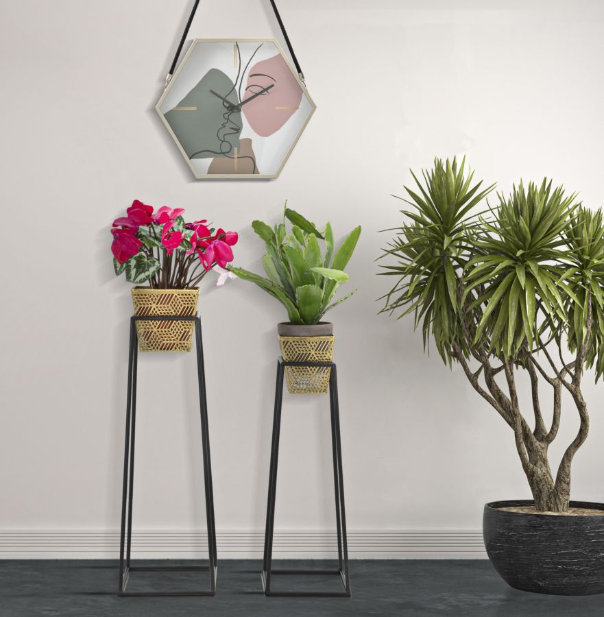 Suporturi ghivece moderne, perfecte pentru interioare glam, contribuind la un decor contemporan și organizat.