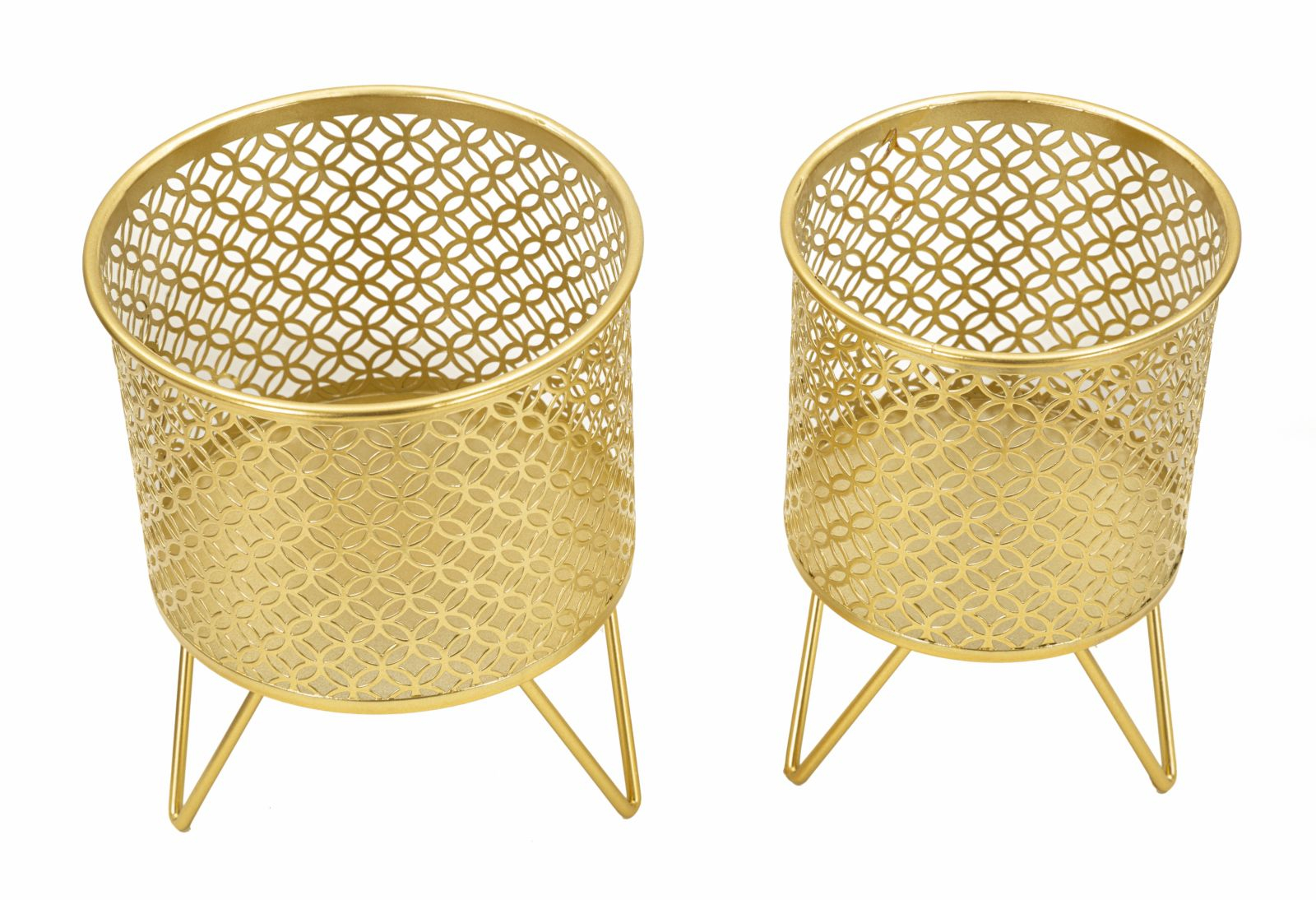 Suporturi de ghivece glam, integrate armonios în decorul interior modern, aduc un accent de lux. Design perforat, completează stilul sofisticat, perfecte pentru a susține plante decorative.
