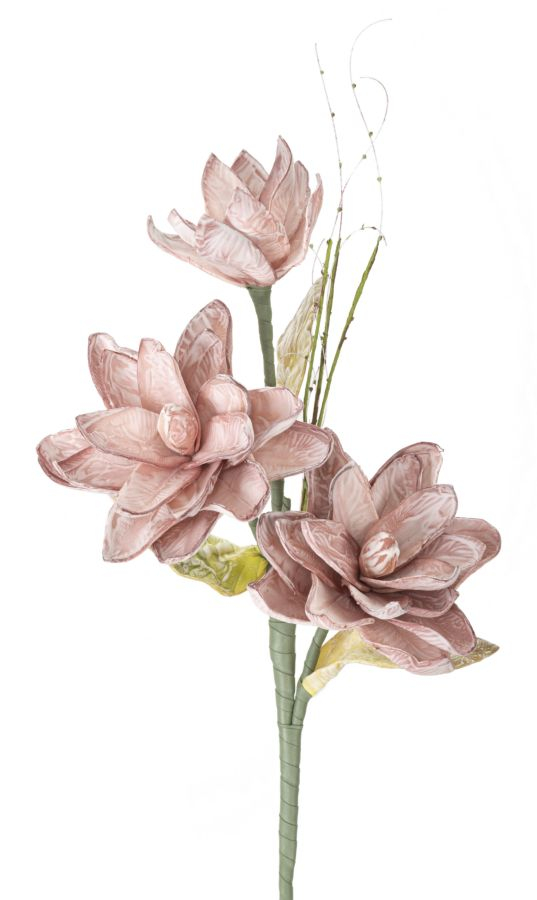Magnolia artificiala roz cu trei flori: Eleganta romantica pentru orice spatiu. Nuanta delicata, rafinament garantat. Ideala pentru aranjamente feminine. Durabilitate exceptionala.