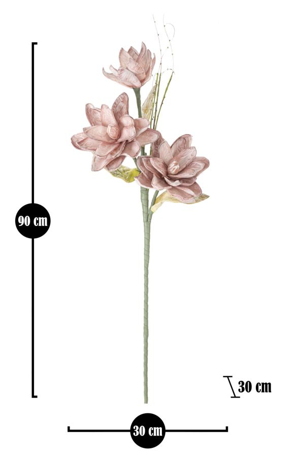 Magnolia artificială cu trei flori roz este o alegere minunată pentru a aduce un aer romantic și feminin în orice spațiu. Cu dimensiunile de 30x90 cm, această floare artificială de cea mai bună calitate, importată de CreativDeco din Italia de la designerul Mauro Ferretti, este ideală pentru aranjamente florale în vaze înalte sau ca piesă centrală într-o decorațiune. Florile artificiale au avantajul de a fi durabile și rezistente în timp, păstrându-și frumusețea fără a necesita îngrijire specială. Nuanța delicată de roz a magnoliei artificiale aduce o notă de eleganță și rafinament, putând fi combinată cu alte flori și plante artificiale pentru a crea compoziții florale deosebite.