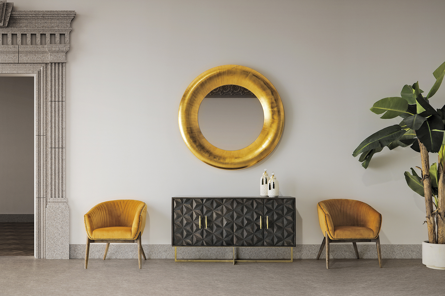 Plantă decorativă bananier verde în stil colonial. Aduce tropicalitate și grandoare în interior. Plante artificiale de calitate pentru decorațiuni impresionante.