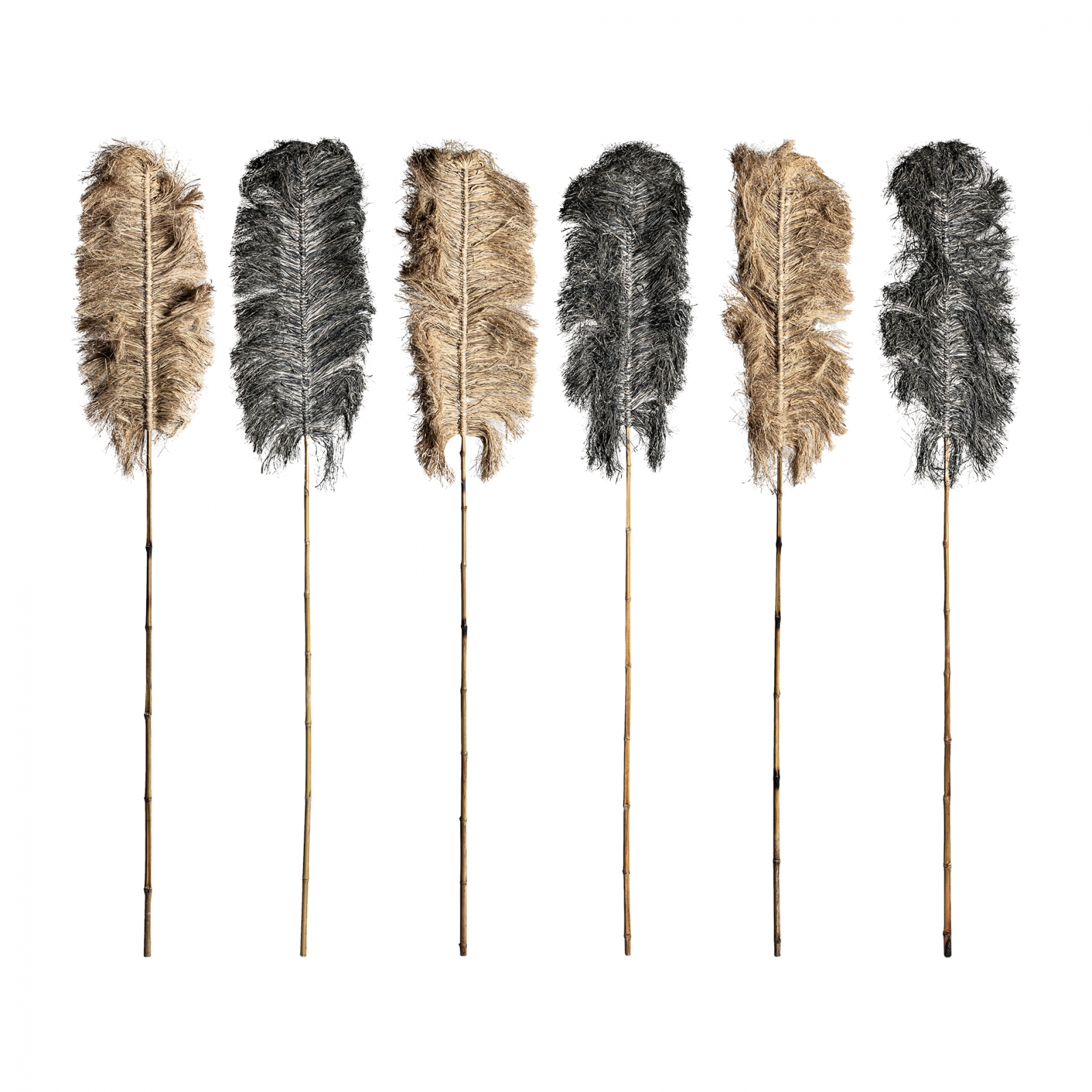 Vical Set 6 crengi decorative din rafie negru si natural in stil etnic 40x2x210 cm