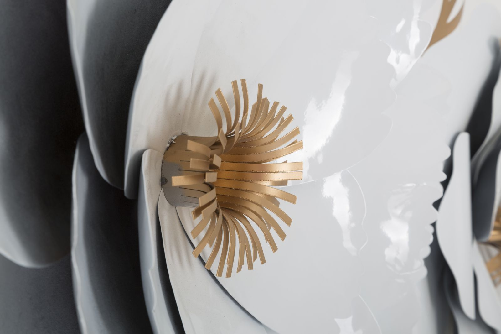 Revigorați orice spațiu cu această decorațiune de perete splendidă în stilul glam, care măsoară 158 cm în lățime și 60 cm înălțime. Designul include flori stilizate și frunze elaborate, toate realizate din metal cu finisaje de alb și auriu. Această piesă captivantă aduce un suflu de natură și un element de sofisticare în decorul dvs., fiind perfectă pentru a atrage atenția într-o cameră de zi, într-un hol spațios sau într-un dormitor. Detaliile delicate ale petalelor și textura bogată a frunzelor metalice adaugă profunzime și un efect vizual impresionant, oferind o atmosferă caldă și primitoare.