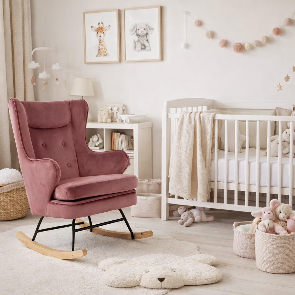 Așază fotoliul balansoar ROCKER lângă o lampă cu lumină caldă și o măsuță laterală minimalistă pentru un colț de relaxare perfect. În camera copilului, completează decorul cu textile în nuanțe neutre și lemn natural pentru o atmosferă calmă, echilibrată și plină de căldură.