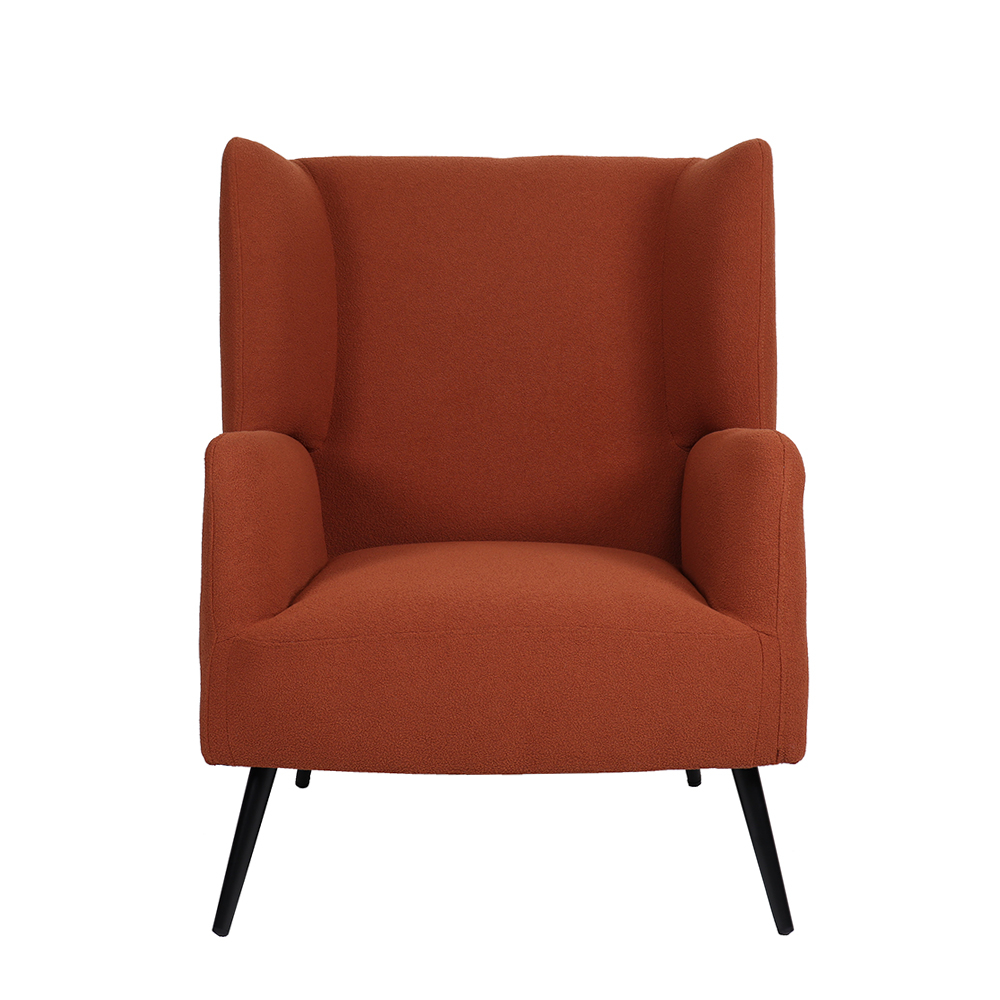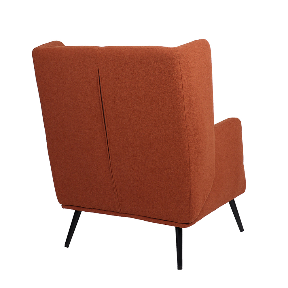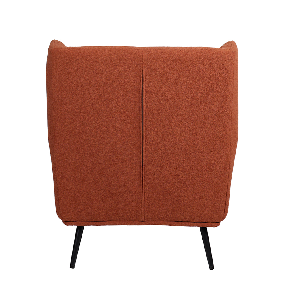 Culoarea caldă cărămizie adaugă personalitate și echilibru vizual oricărui decor, iar textura materialului textil creează o senzație tactilă plăcută și confortabilă. Picioarele metalice negre subliniază linia modernă și adaugă contrast subtil fără a domina estetica generală.