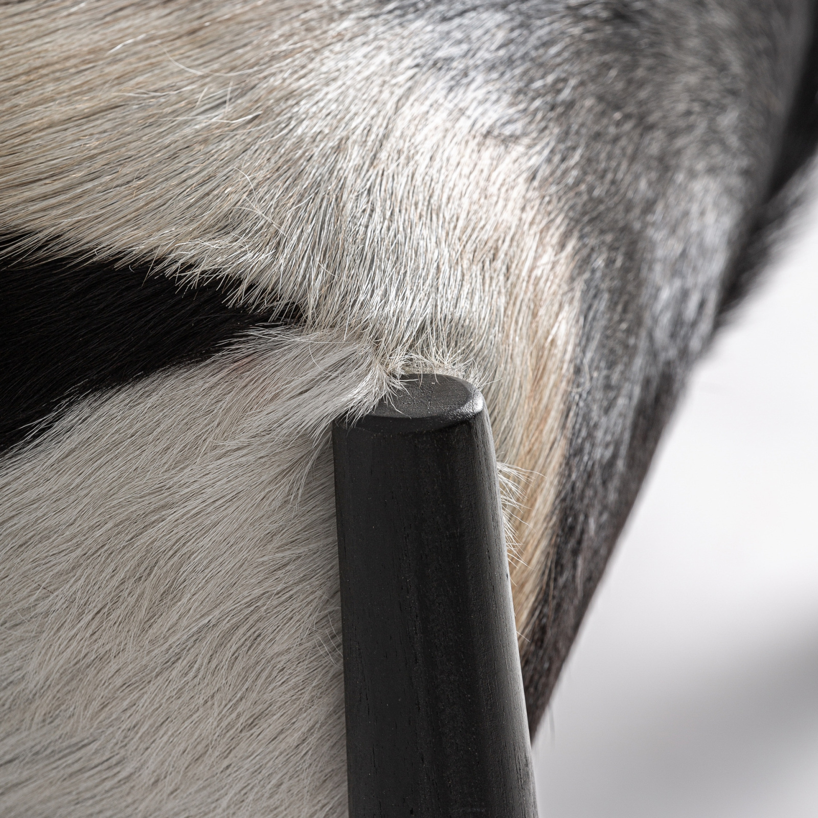 Liniile curate ale cadrului din lemn sunt completate de textura organică a pielii, al cărei desen și ton pot varia natural de la o piesă la alta. Această caracteristică conferă fiecărui fotoliu un aspect unic, subliniind valoarea artizanală și autenticitatea materialelor folosite.