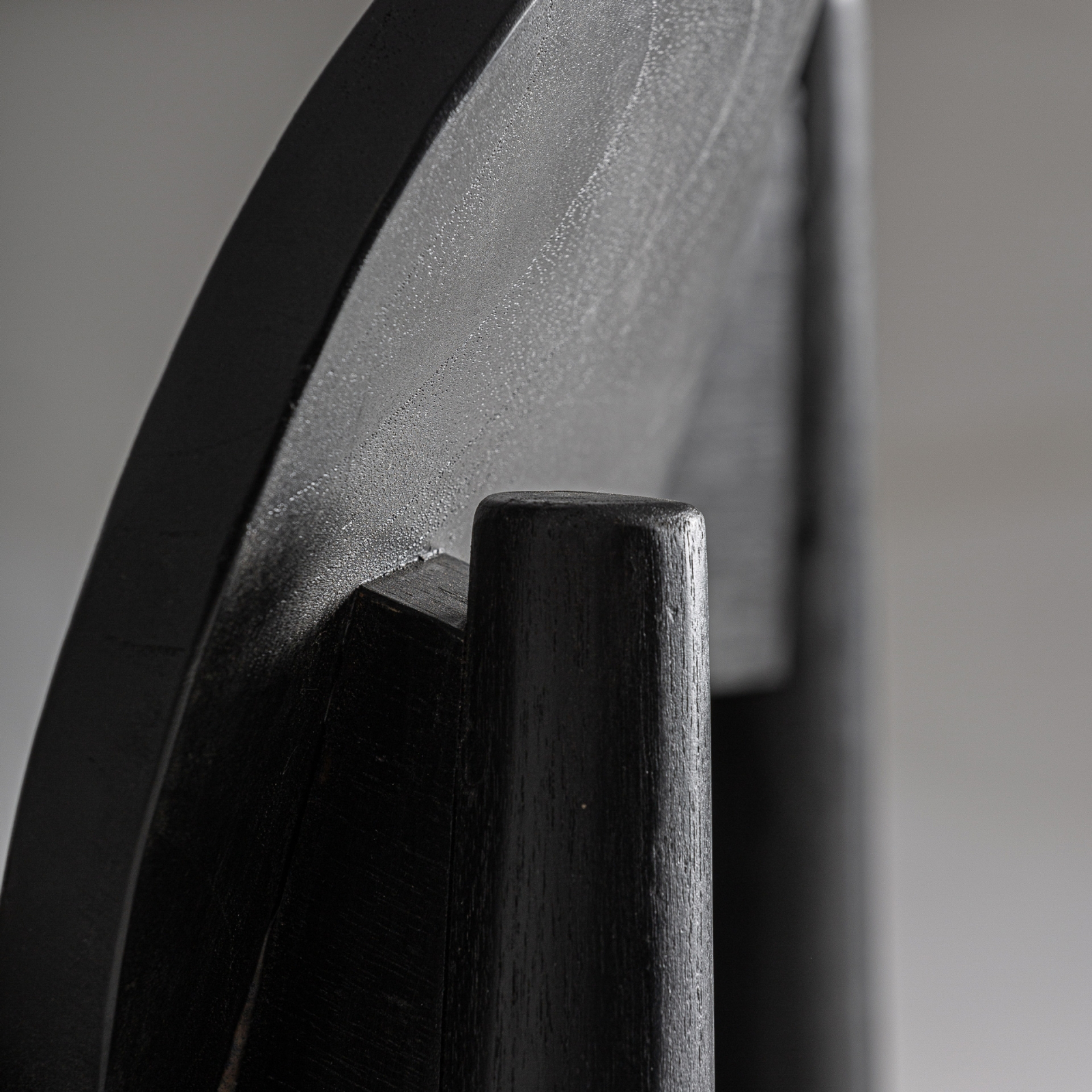 Fotoliu cu structură sculpturală din lemn de tec finisaj negru și șezut din piele naturală Kasher 80 x 67 x 71 cm