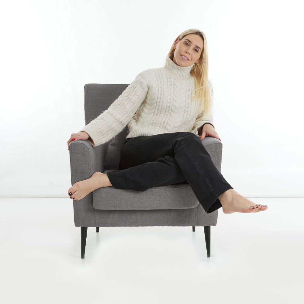Amplasează fotoliul ALL TIME într-un colț al livingului alături de o măsuță laterală cu accente metalice și o lampă de podea cu abajur textil. Pentru a adăuga căldură și contrast nuanței de gri, completează cu perne decorative în culori vibrante precum galben muștar, albastru cobalt sau verde smarald. O covoraș texturat în tonuri neutre va ancora vizual aranjamentul, iar o plantă verde amplasată în apropriere va adăuga prospețime și va completa perfect aspectul industrial cu elemente naturale.