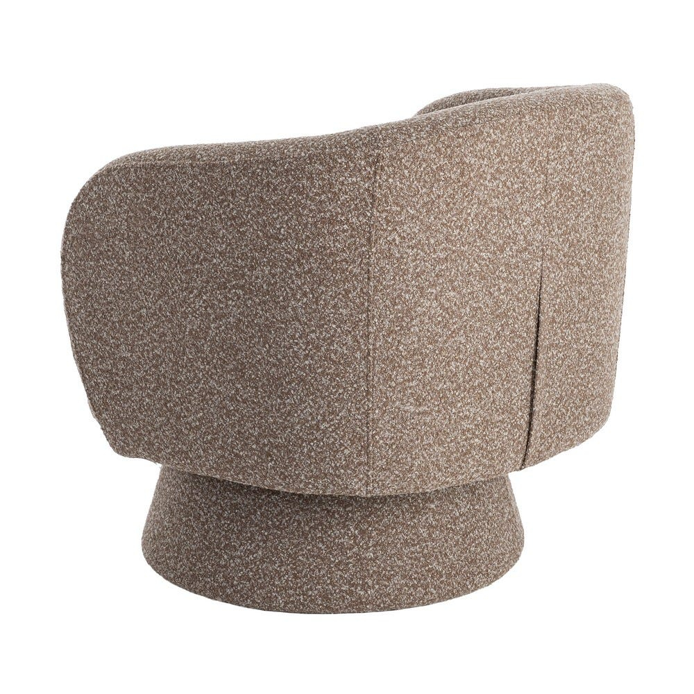 Designul compact, cu spătar curbat și bază cilindrică, susține o poziție relaxată și conferă piesei o prezență clară în spațiu. Fotoliul respectă standardul EN16139:2013, fiind adecvat pentru utilizare intensivă în spații HoReCa precum hoteluri, lounge-uri sau zone de recepție.