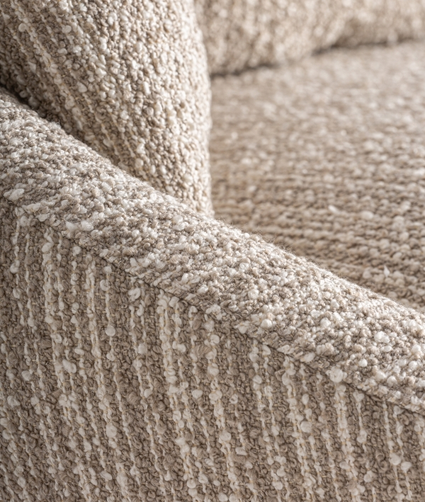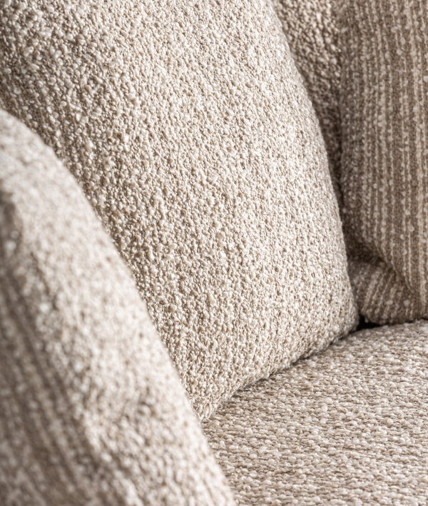 Fotoliul rotativ Nuba îmbină confortul generos cu un design contemporan elegant. Tapițeria sa texturată în nuanță de bej și forma rotunjită creează o piesă de mobilier primitoare, perfectă pentru momentele de relaxare.