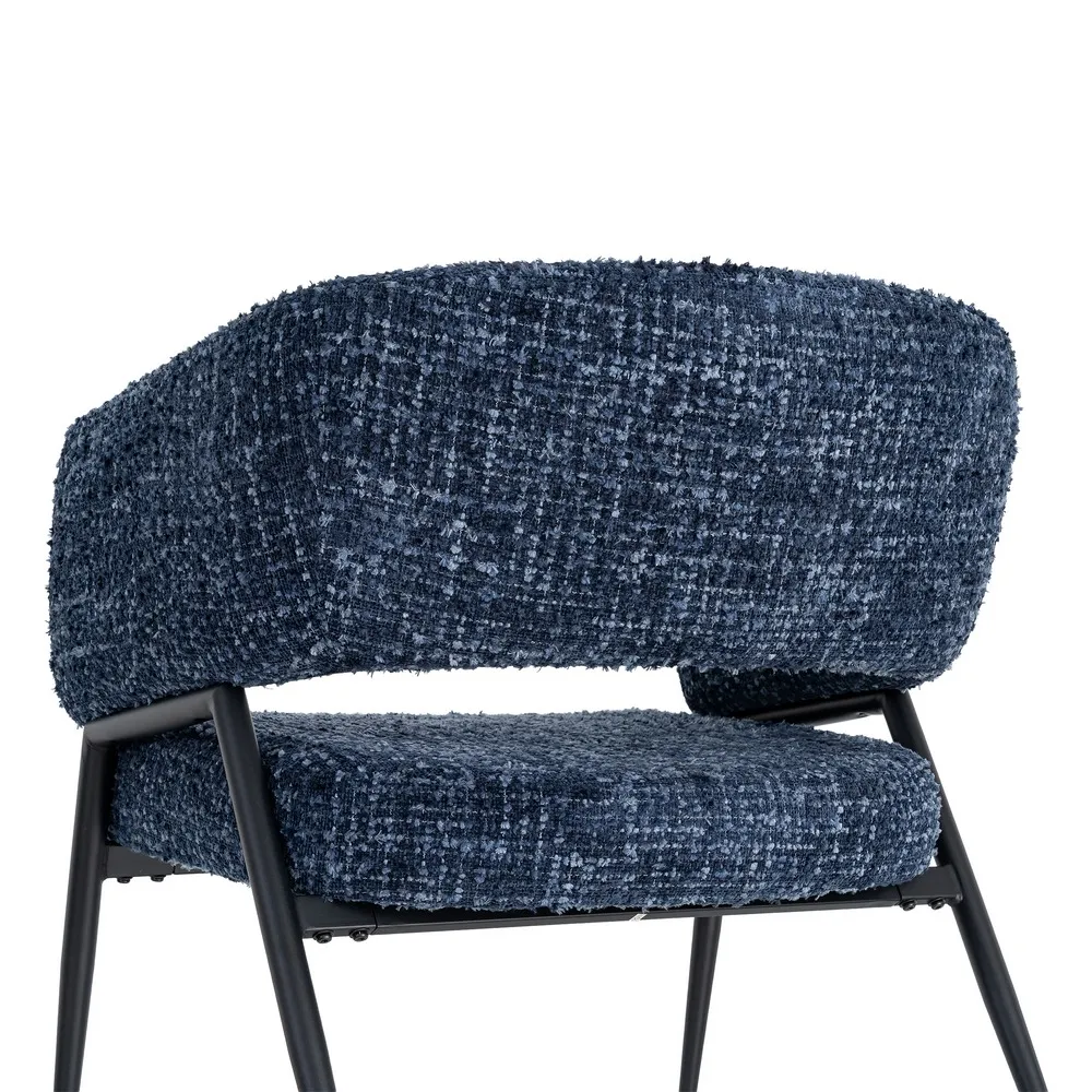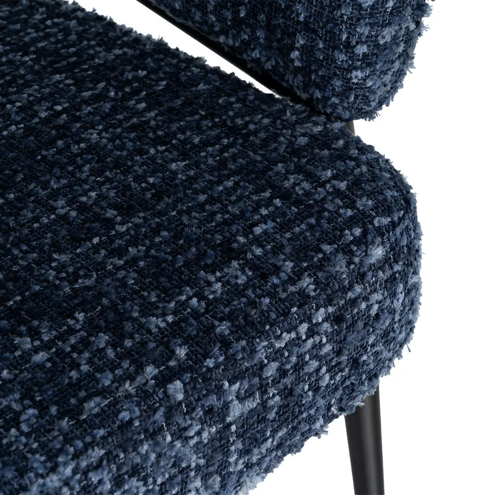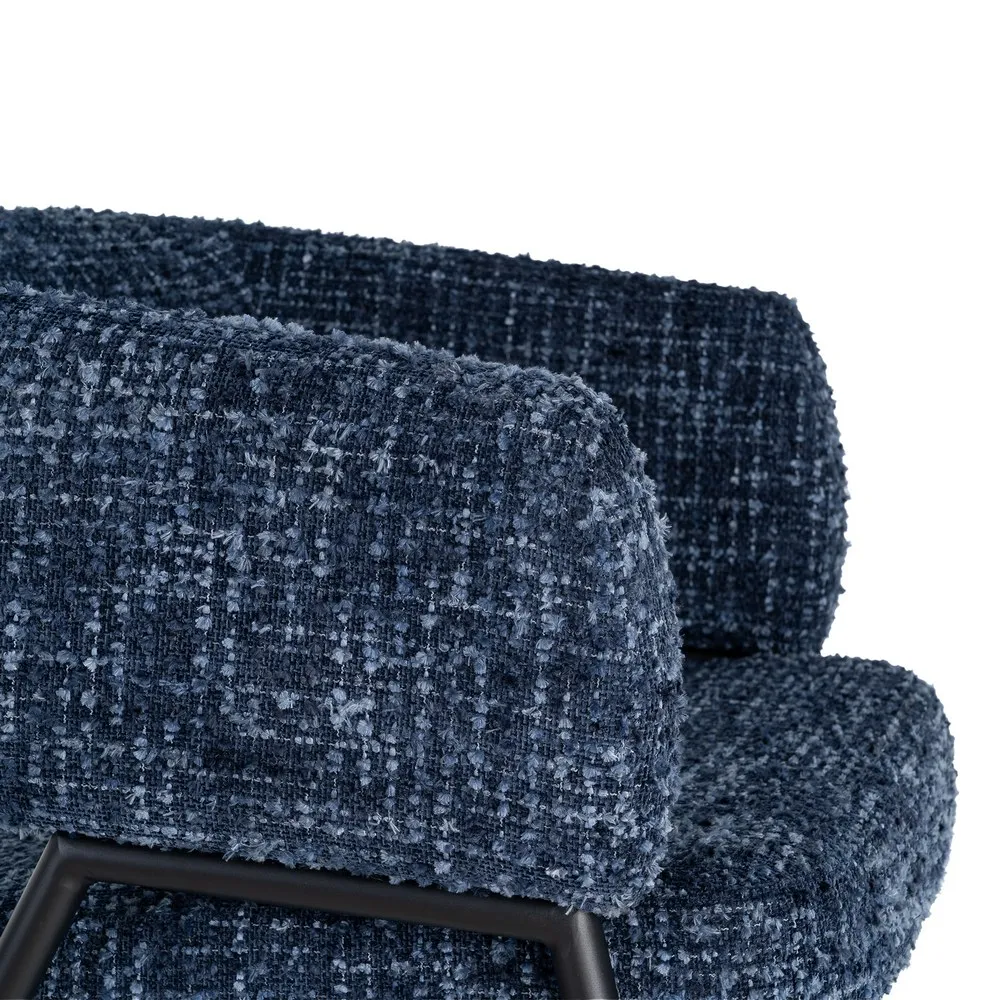 Un set care aduce profunzime și echilibru într-un mod natural. Nuanța de albastru și textura bogată a stofei creează un efect vizual plăcut, iar forma rotunjită a brațelor face ca aceste fotolii să devină rapid locuri în care vrei să te așezi și să rămâi.