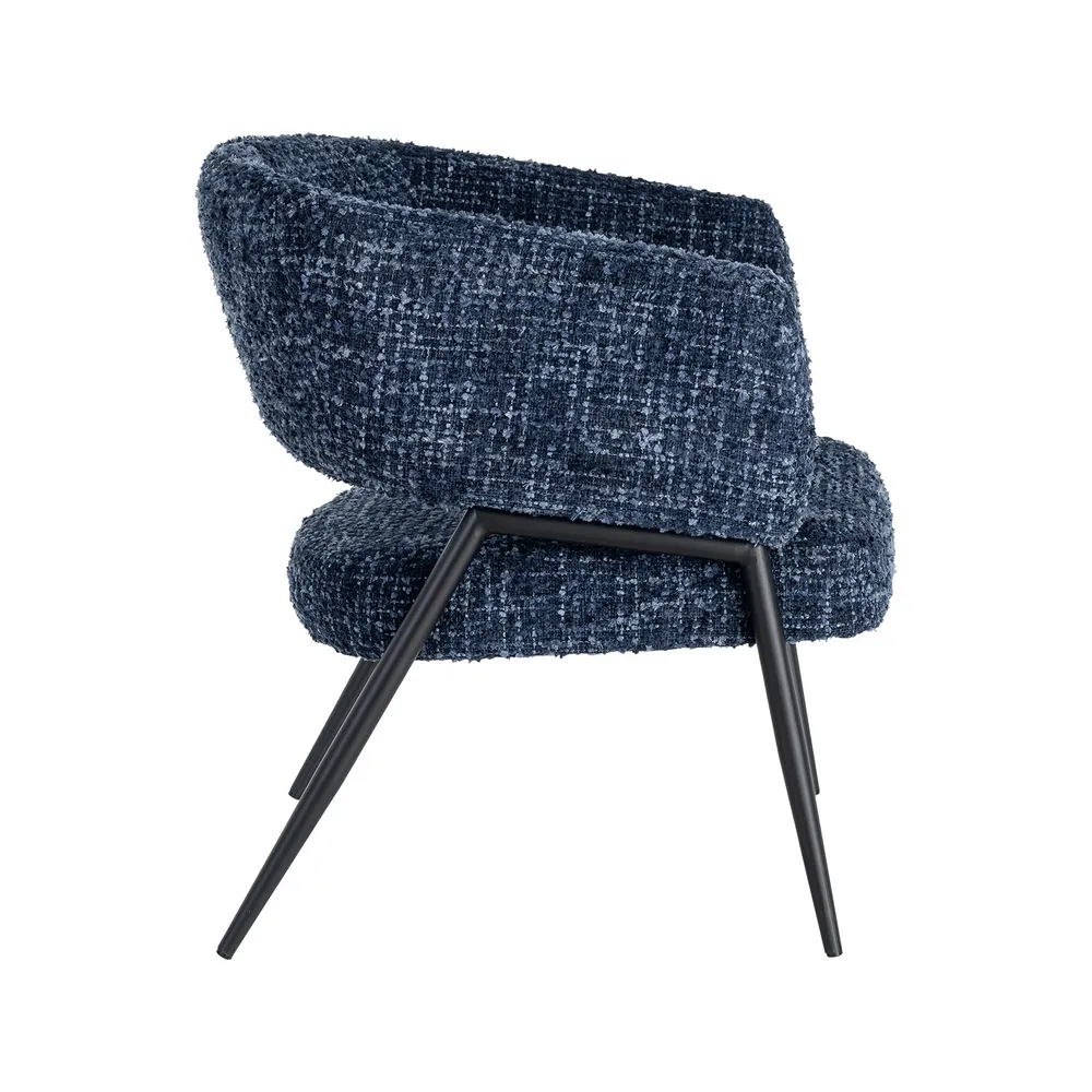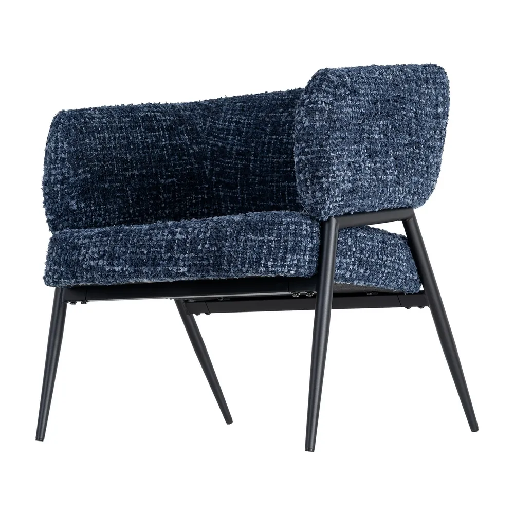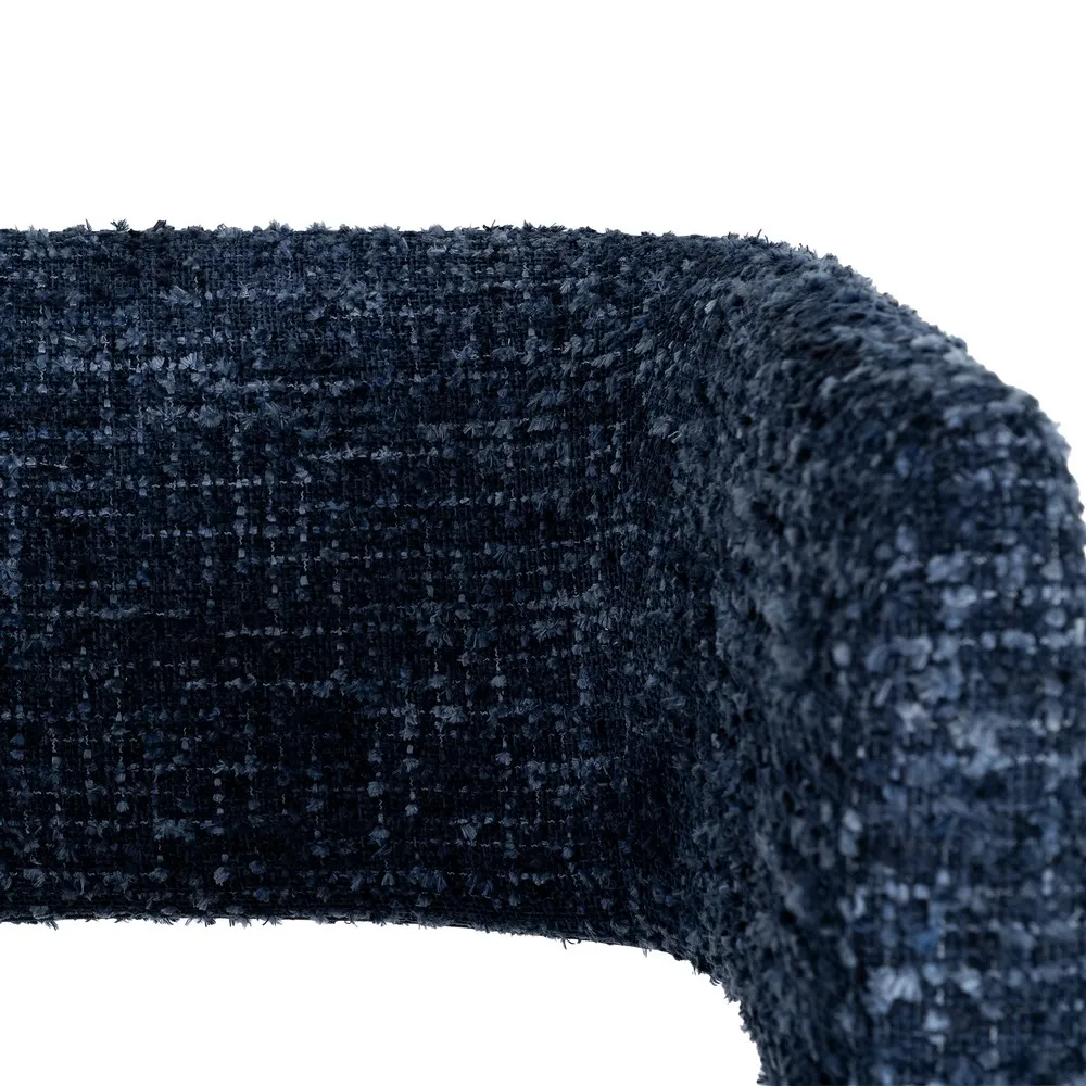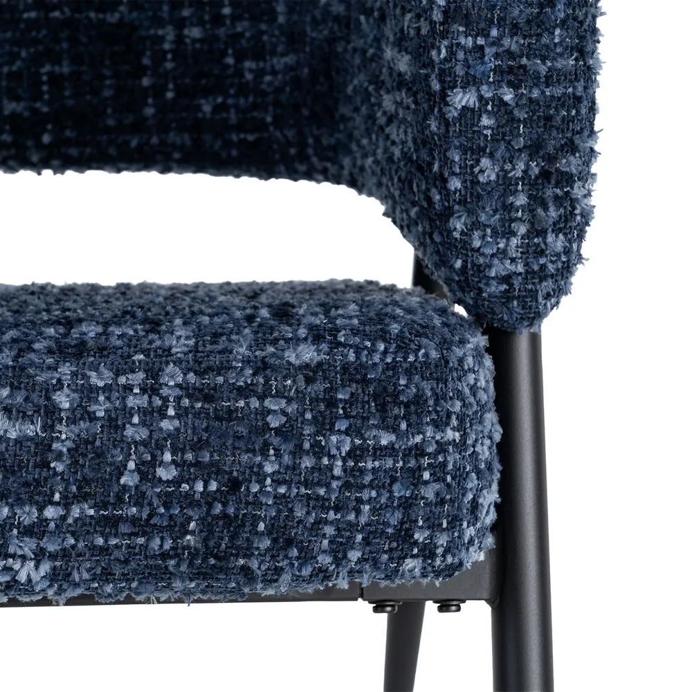 Un set care aduce profunzime și echilibru într-un mod natural. Nuanța de albastru și textura bogată a stofei creează un efect vizual plăcut, iar forma rotunjită a brațelor face ca aceste fotolii să devină rapid locuri în care vrei să te așezi și să rămâi.