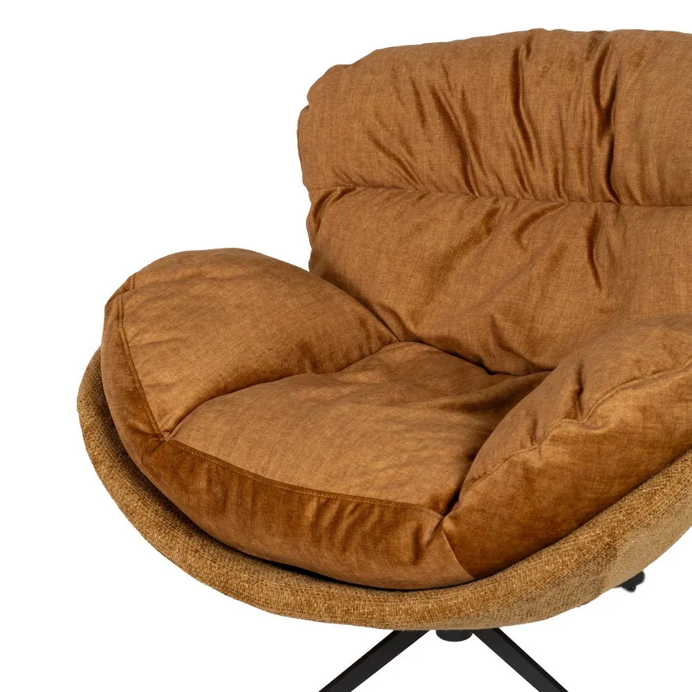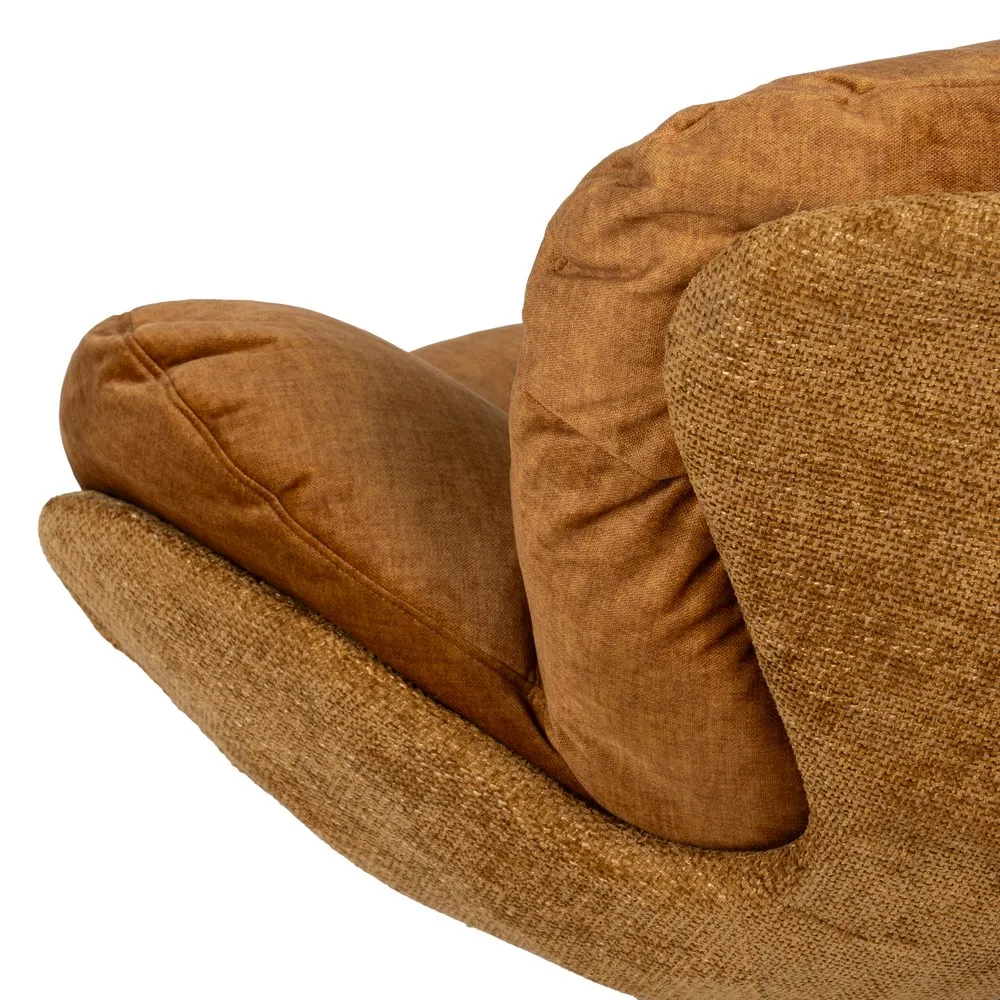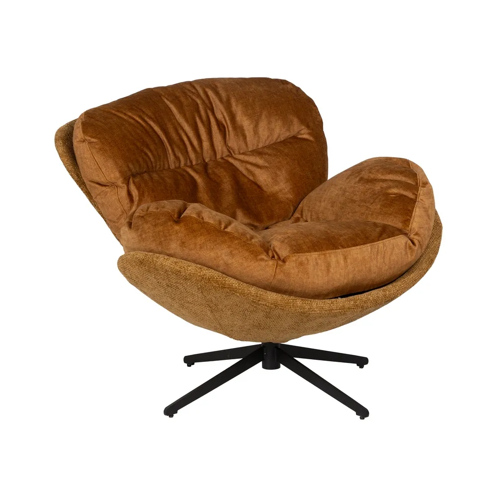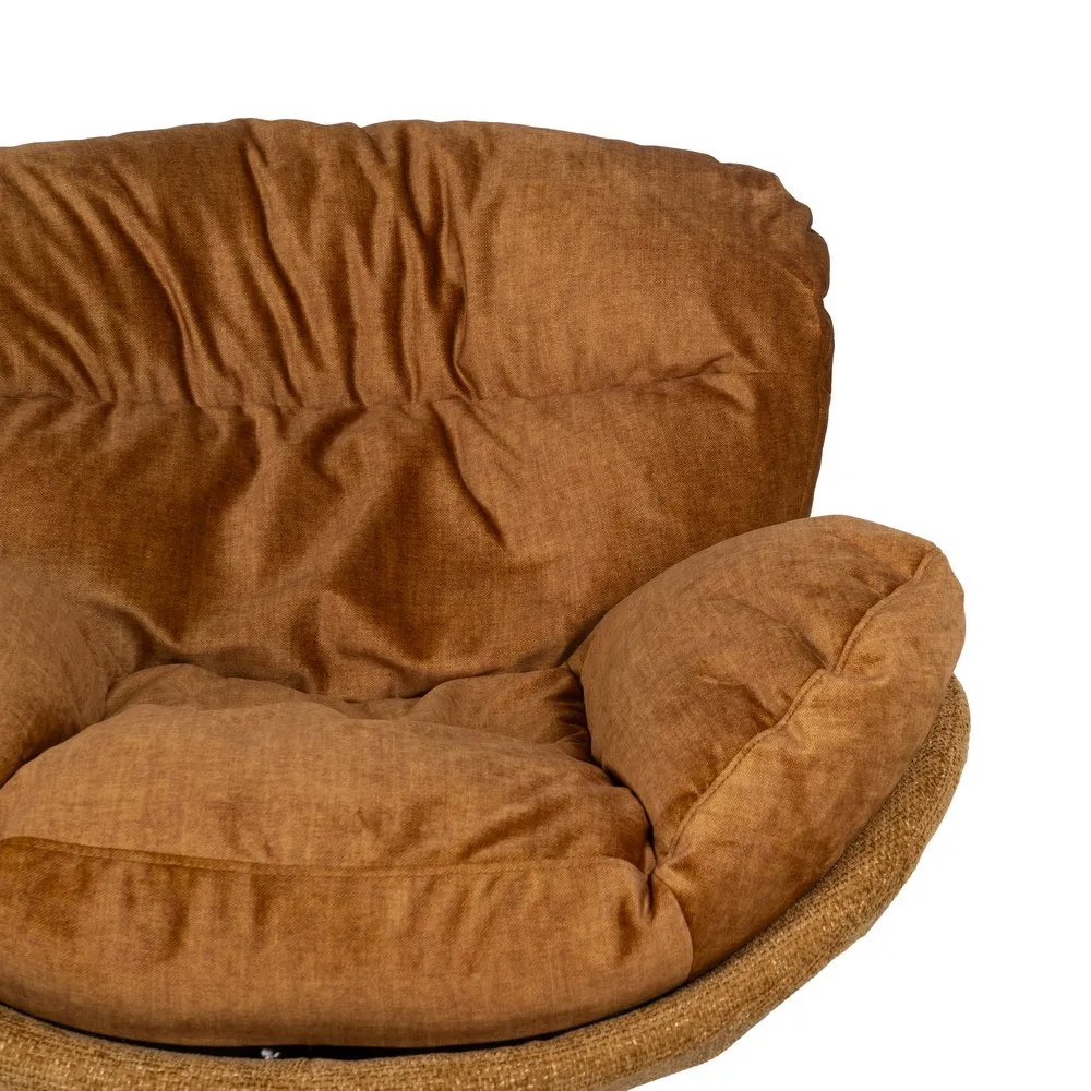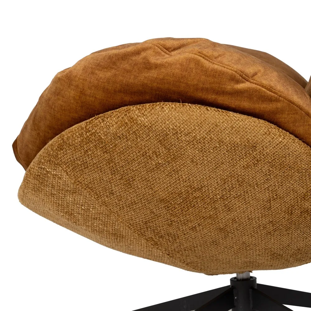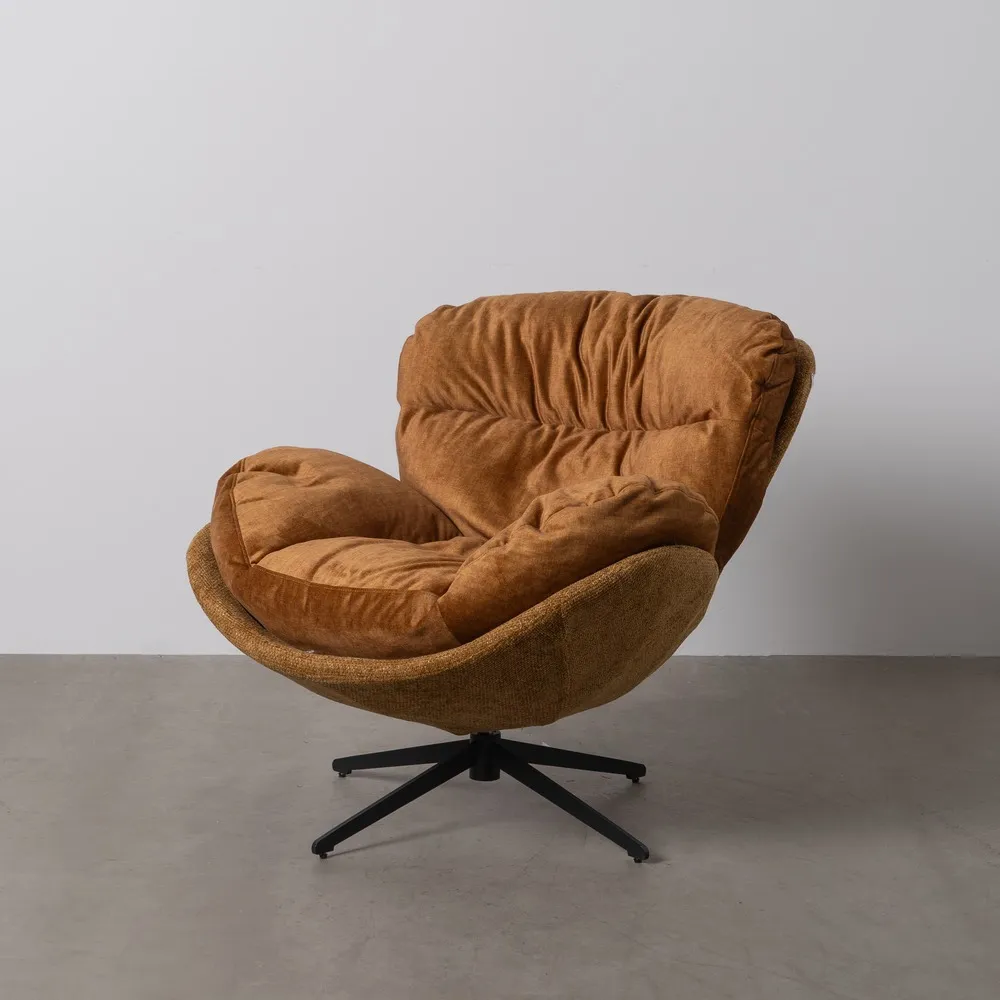 Fotoliu rotativ maro caramiziu din stofa cu baza metalica din otel de culoare neagra. Designul modern aduce un plus de eleganta si confort oricarei amenajari. Descoperiti combinatia perfecta intre functionalitate si estetica, pentru a va bucura de momentele de relaxare. Acest fotoliu rotativ va deveni cu siguranta centrul de atractie al spatiului dvs.
