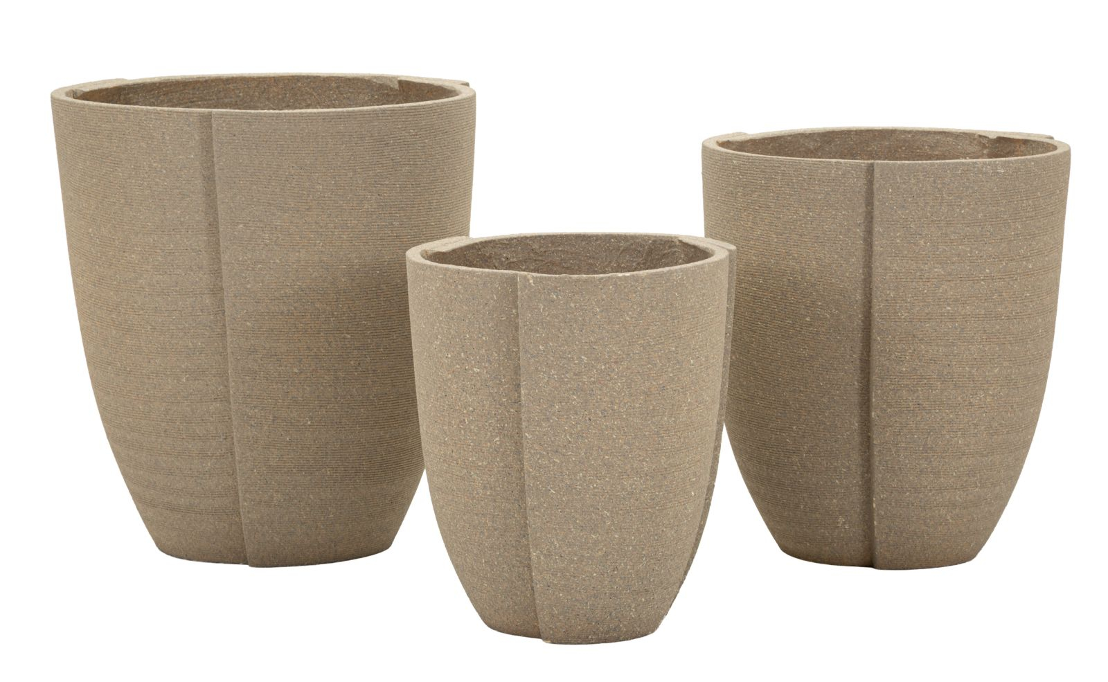 Setul Peru pentru exterior reunește trei suporturi pentru plante și flori cu forme simple, proporții echilibrate și finisaj cu aspect mineral. Designul curat și textura materială le transformă într-o alegere versatilă pentru grădini, terase sau zone de acces amenajate în stil natural și contemporan.