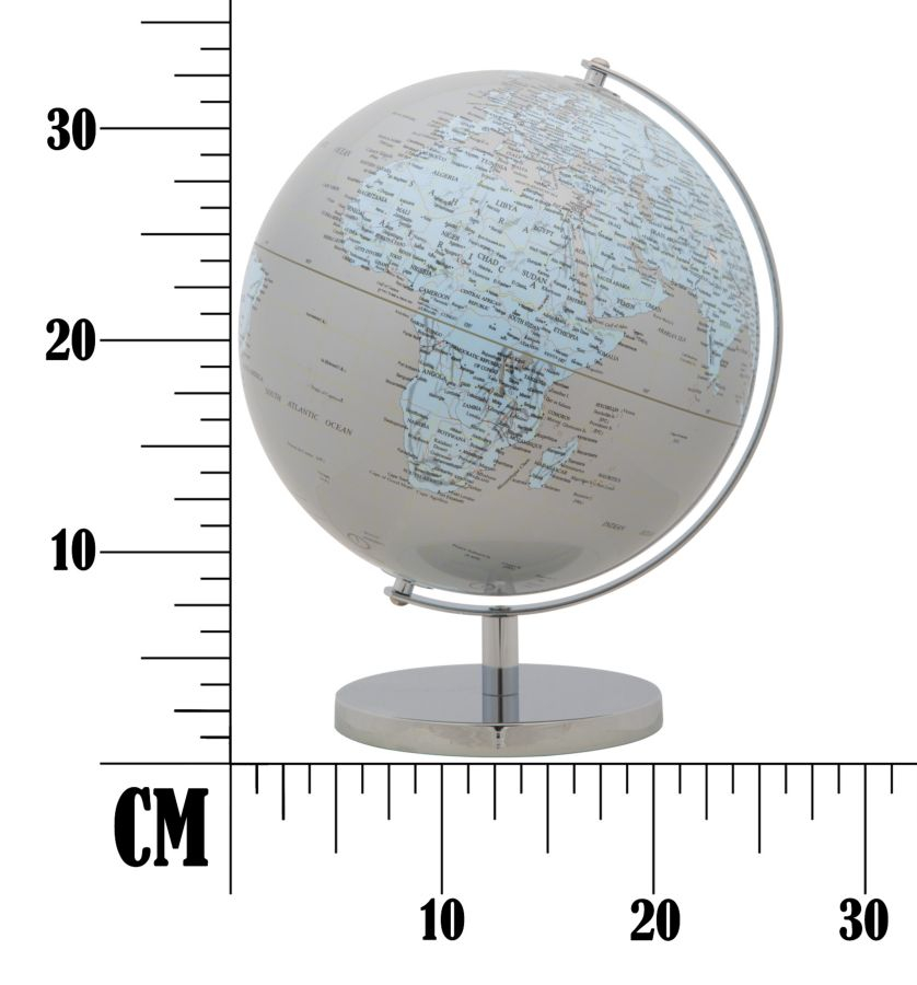 Redescoperiți frumusețea lumii cu acest glob pământesc argintiu rafinat, o piesă de decor versatilă pentru case moderne și birouri elegante. Cu dimensiuni impresionante de 25x34 cm, acest glob prezintă oceane argintii strălucitoare și continente în nuanțe de albastru, oferind o perspectivă unică și atrăgătoare asupra geografiei mondiale. Suportul clasic din metal argintiu adaugă o notă de eleganță atemporală. Ideal pentru pasionații de călătorii, educatori sau ca element decorativ statement, acest glob pământesc argintiu este perfect pentru cei care apreciază designul contemporan și cunoașterea geografică.