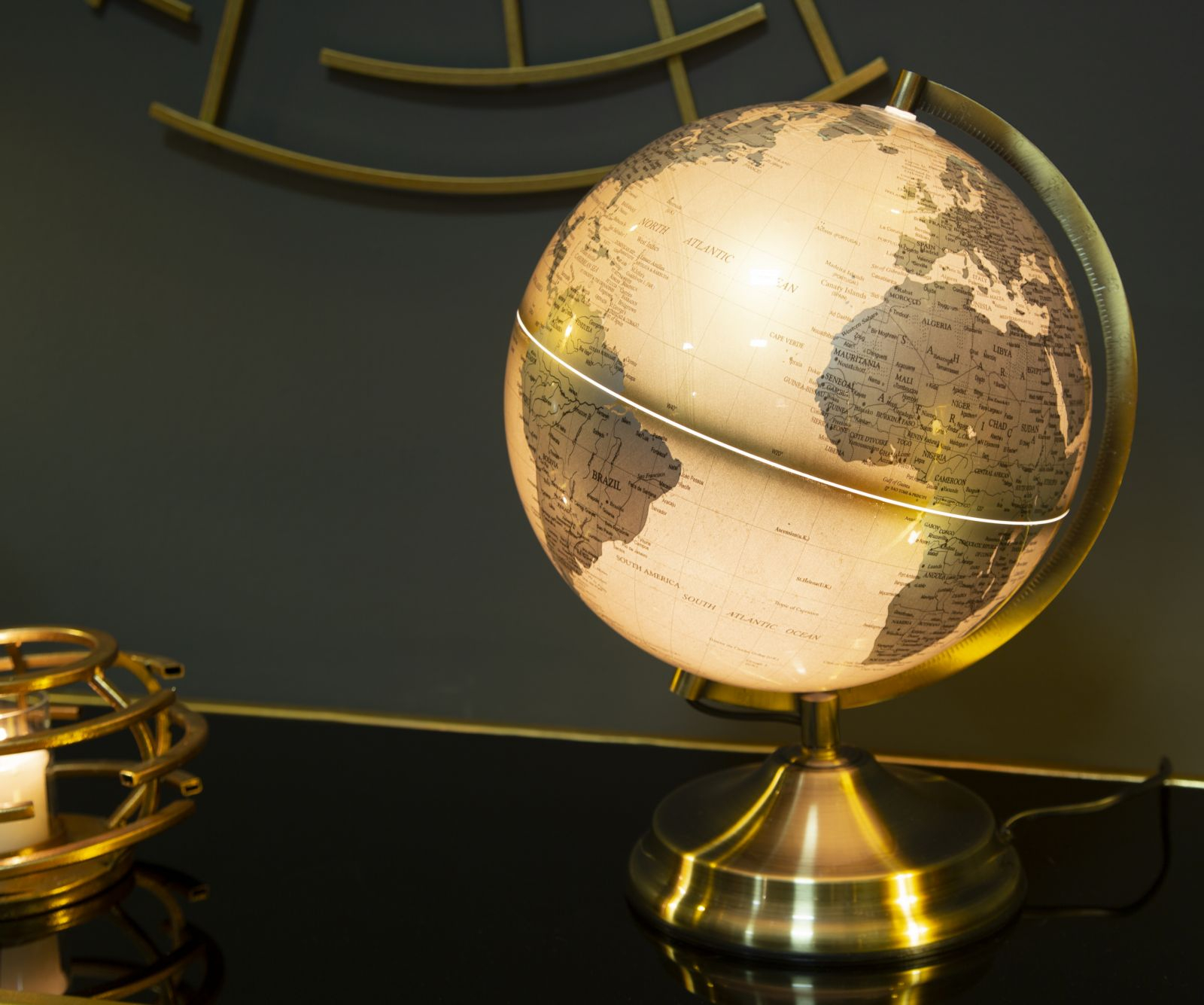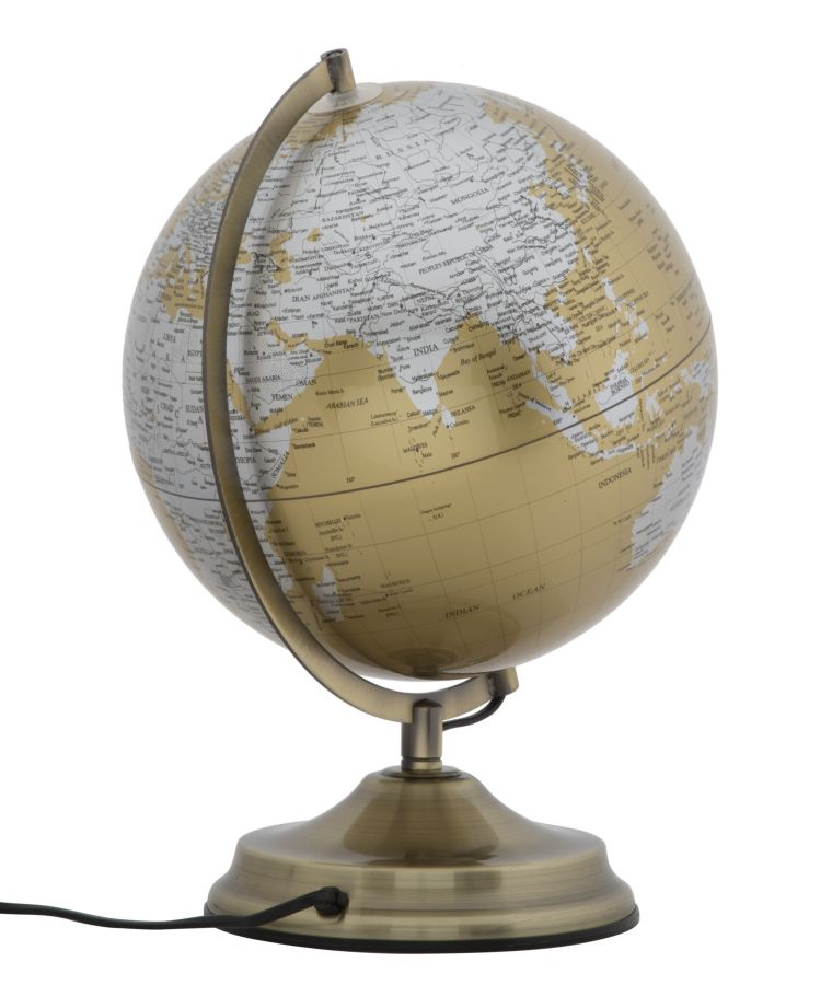 Iluminați-vă cunoștințele și spațiul cu acest glob pământesc auriu cu argintiu și lumină încorporată, o piesă de decor unică pentru birouri creative și livinguri eclectice. Cu dimensiuni generoase de 25x38 cm, acest glob vintage combină designul clasic cu funcționalitatea modernă, prezentând o paletă vibrantă de culori aurii și argintii. Transformându-se într-o veioza elegantă, acest glob oferă o lumină ambientală caldă, perfectă pentru studiu sau relaxare. Suportul metalic auriu, cu detalii vintage, adaugă un plus de farmec și caracter. Ideal pentru pasionații de geografie, designeri de interior sau ca element focal în spații contemporane, acest glob pământesc iluminat este perfect pentru cei care caută o piesă de decor multifuncțională cu un twist modern și colorat.