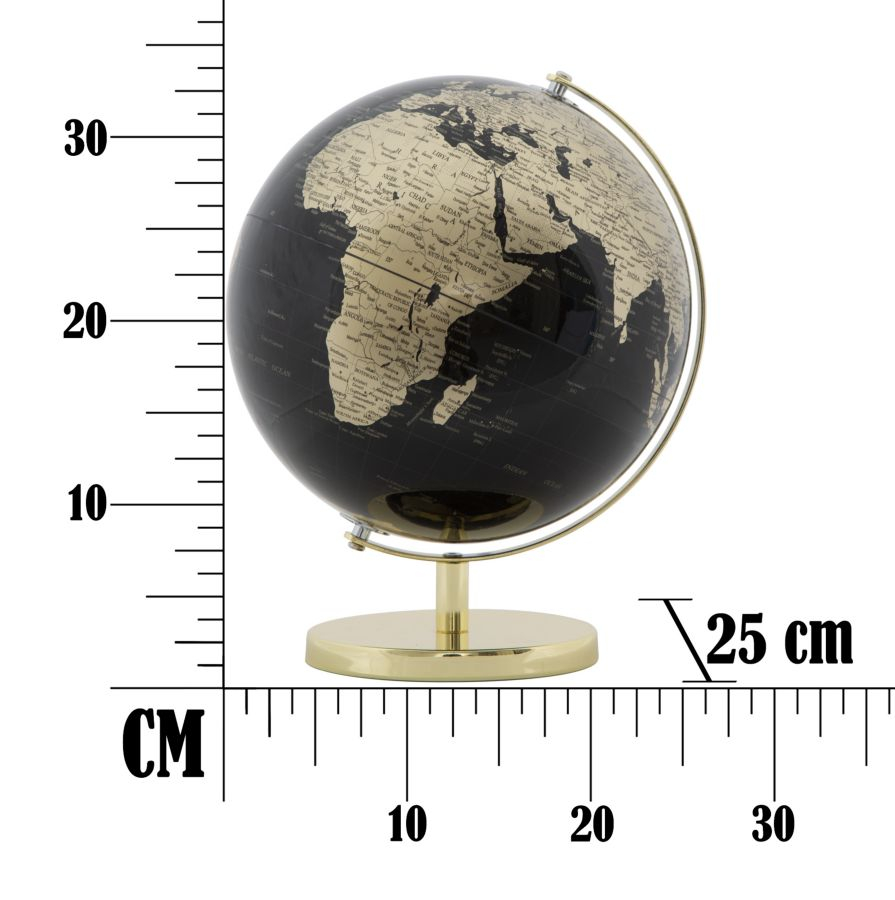 Aduceți un strop de lux și rafinament în casa sau biroul dumneavoastră cu acest glob pământesc auriu impresionant. Cu dimensiuni generoase de 25x34 cm, acest glob oferă o perspectivă captivantă asupra lumii, prezentând oceane negre misterioase și continente aurii strălucitoare. Suportul clasic din metal auriu, cu linii simple și elegante, completează perfect aspectul luxos al globului. Perfect pentru decoruri opulente, birouri executive sau ca piesă centrală în livinguri sofisticate, acest glob pământesc auriu este ideal pentru cei care apreciază eleganța și geografia mondială.