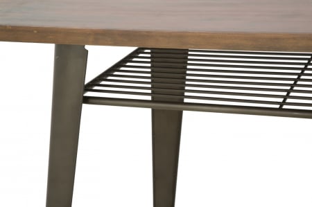 Masă dining stil vintage industrial, 6 persoane. Raft integrat, aspect autentic. Potrivită pentru lofturi și bucătării open-space.