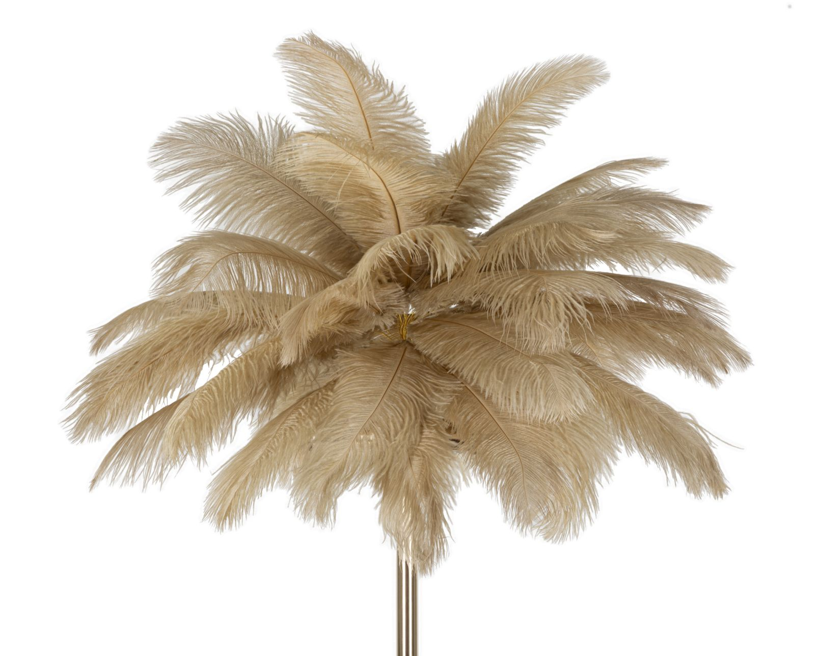 Această lampă de podea decorată cu pene crem are o înălțime totală de 160 cm și un diametru al abajurului de 55 cm. Designul său unic, asemănător cu un palmier, și cele trei surse de lumină creează o atmosferă caldă și primitoare. Poți să o plasezi în living sau dormitor pentru a adăuga un element de exotism și stil. CreativDeco imprta aceasta lampa de podea pt. dv. direct din Italia, produsul fiind un Mauro Ferretti original.