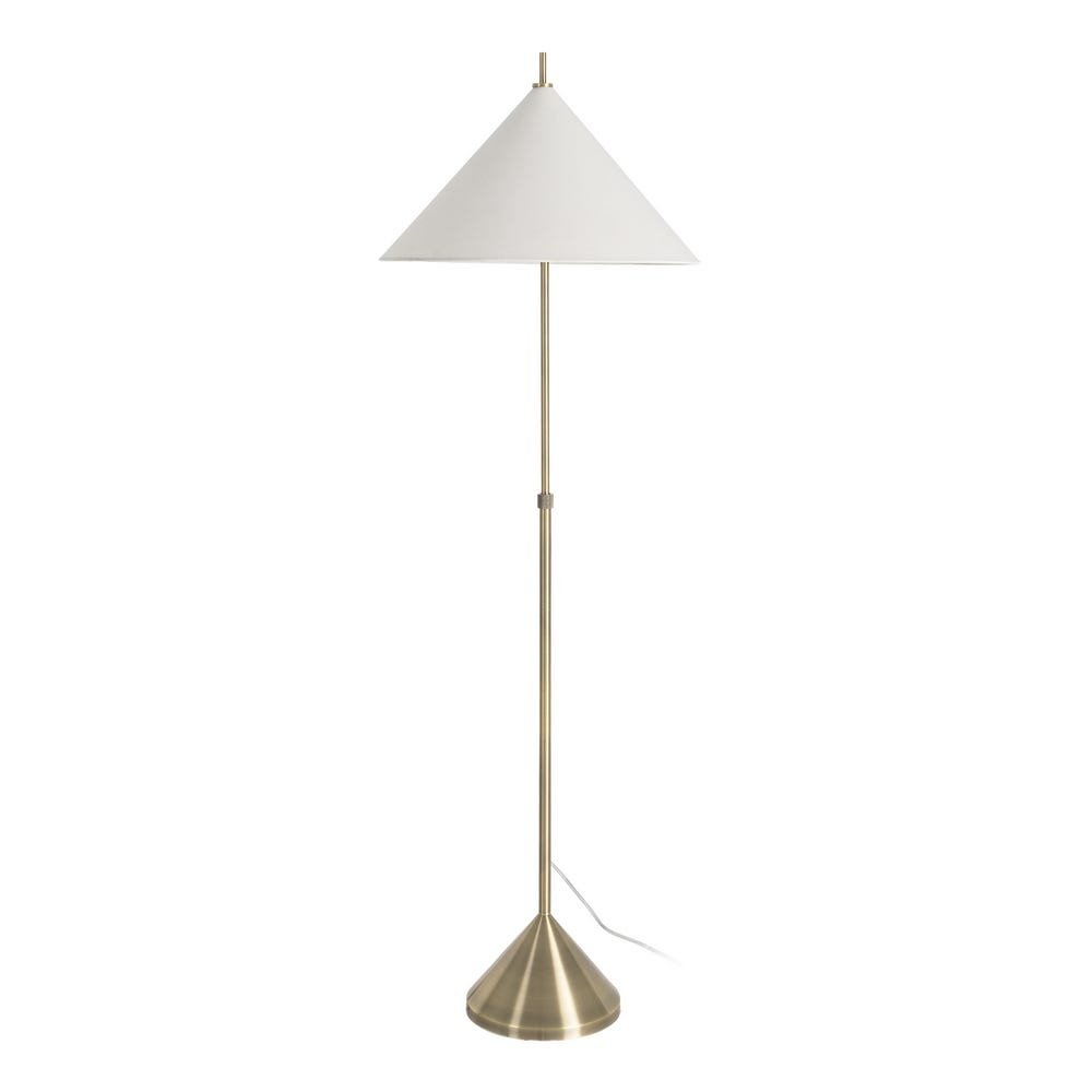 Lampadar din metal auriu cu bază conică și abajur alb din țesătură de in formă conică 54 x 54 x 171 cm