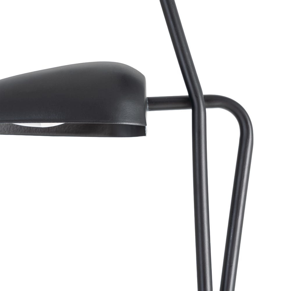 Baza circulară asigură stabilitate, iar tija subțire păstrează un aspect aerat. Cele două brațe, dispuse la înălțimi diferite, susțin capete metalice închise la culoare, cu forme ușor organice care direcționează fluxul luminos spre jos, potrivit pentru lectură sau accent vizual.