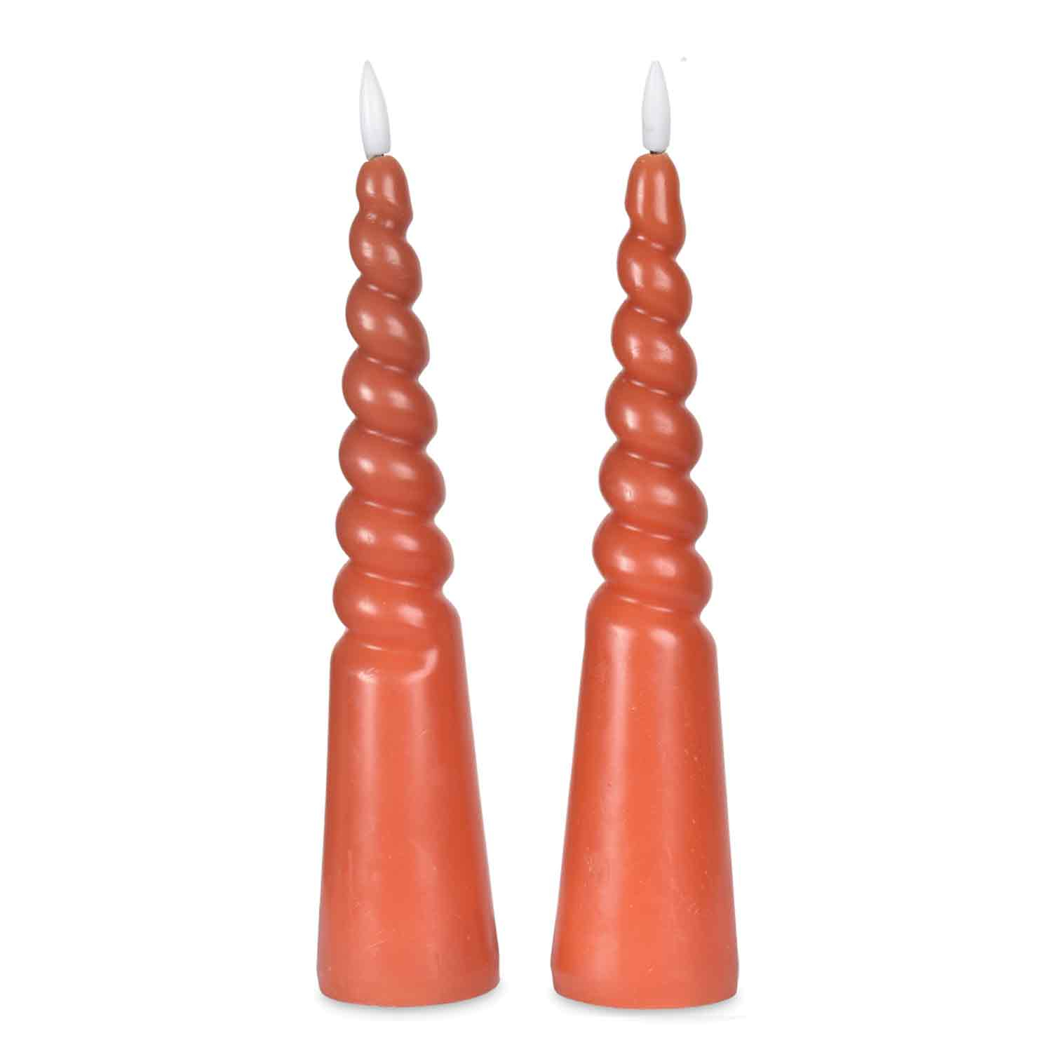 Transformă rapid atmosfera din casă cu un set de 6 lumânări LED tip pilon, în formă conică torsadată, cu finisaj din ceară naturală și flacără LED cu efect pâlpâitor. Sunt ideale pentru decor de masă, living, hol sau evenimente, oferind lumină ambientală elegantă, fără fum, fără căldură și fără flacără deschisă.