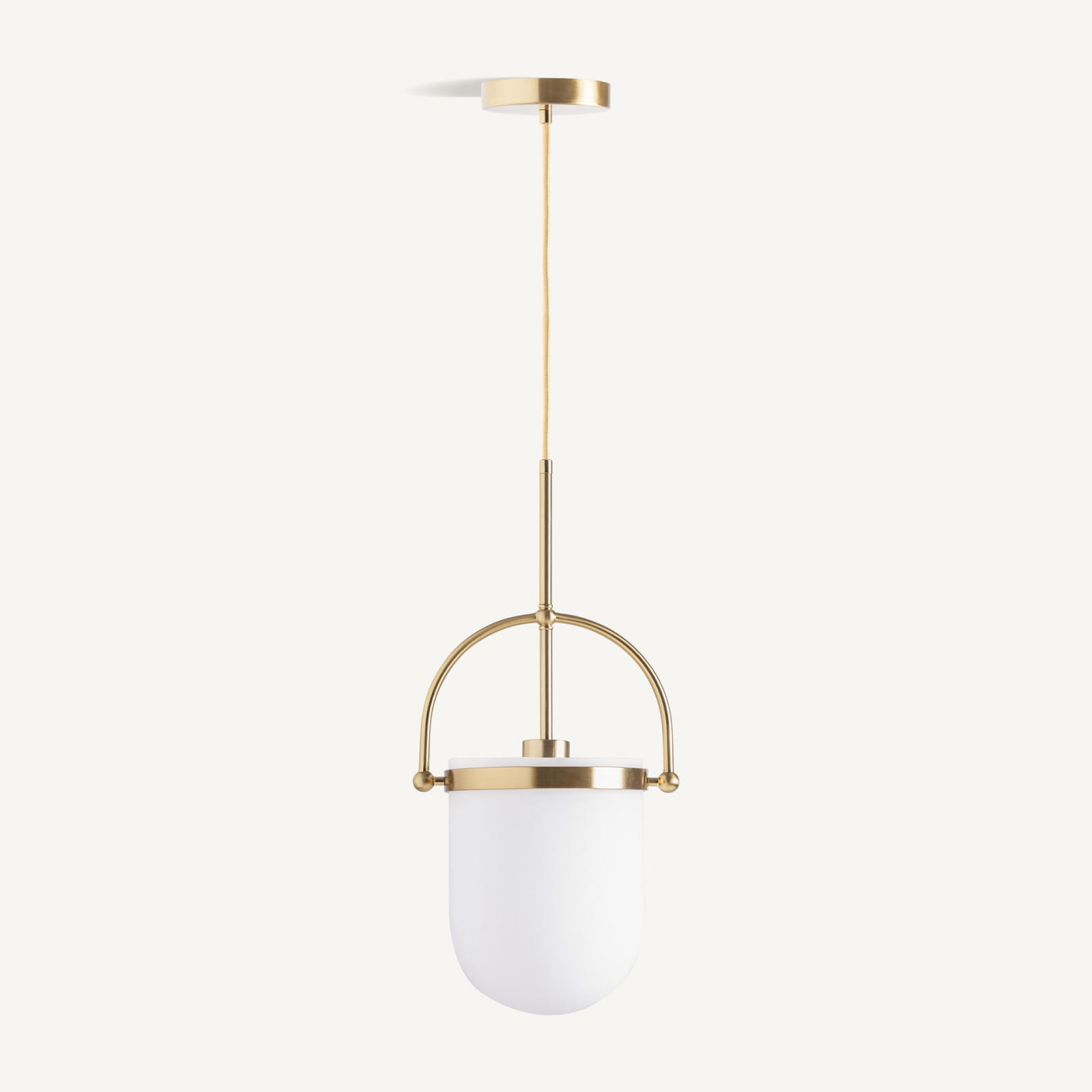 Lampa suspendată Kihe aduce în prim-plan un design art deco reinterpretat într-o formă echilibrată și elegantă, unde sticla albă opacă este completată de accente metalice aurii cu finisaj vechi, creând o piesă decorativă cu prezență rafinată.