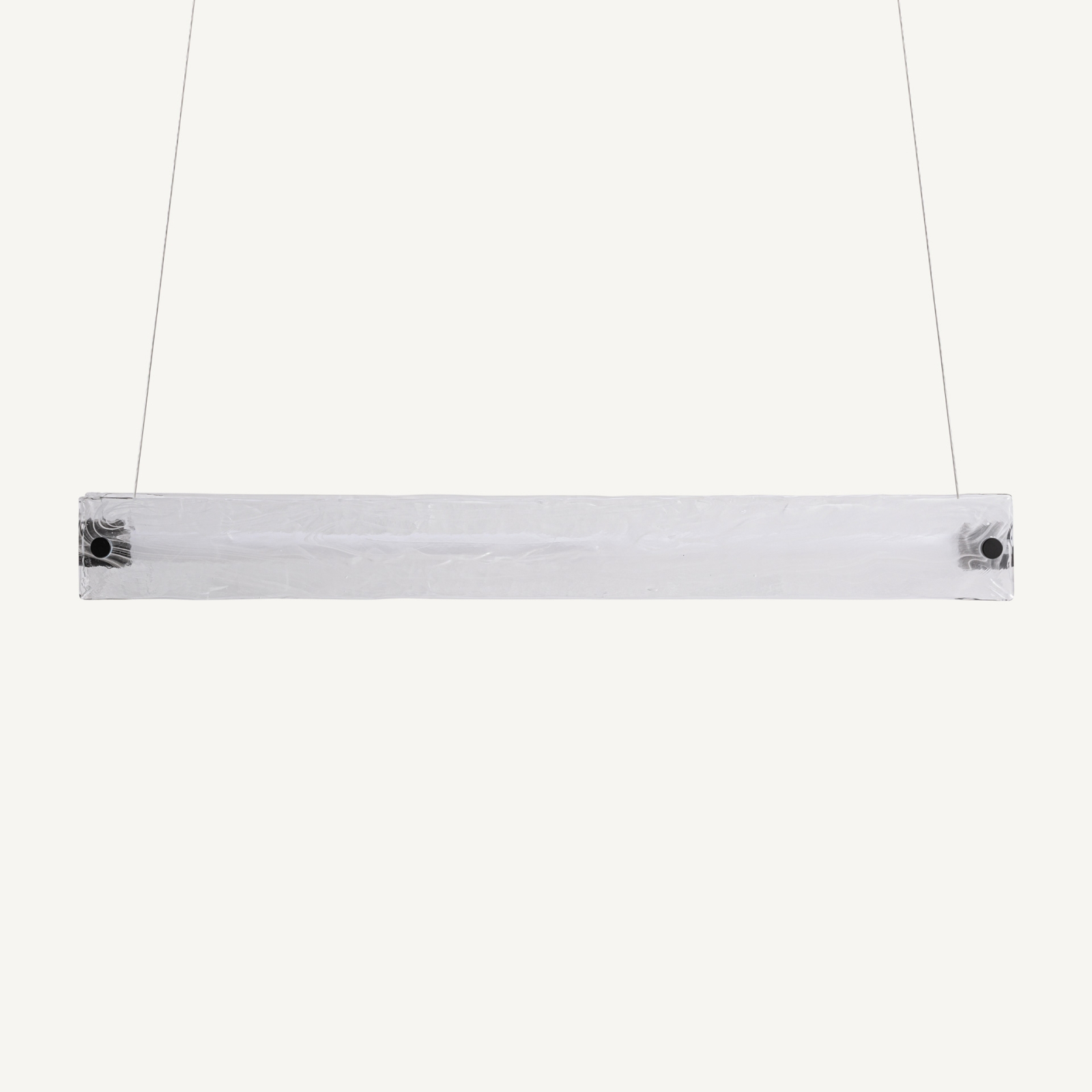 Lampă suspendată liniară cu corp din cristal alb texturizat și structură metalică neagră Shalese 90 x 10 x 10 cm