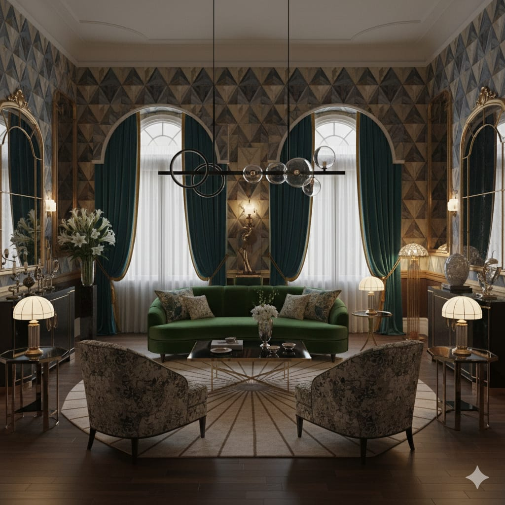 Sfatul designerului CreativDeco: Amplasează lampa Daria deasupra unei mese de dining sau într-un living cu tavan mediu spre înalt, pentru a pune în valoare contrastul dintre metalul negru și transparența elegantă a cristalului fumuriu.
