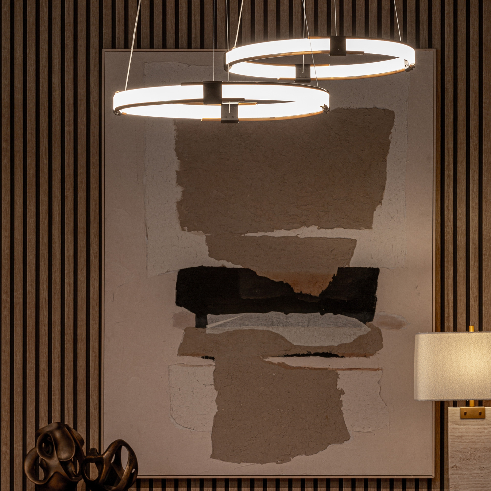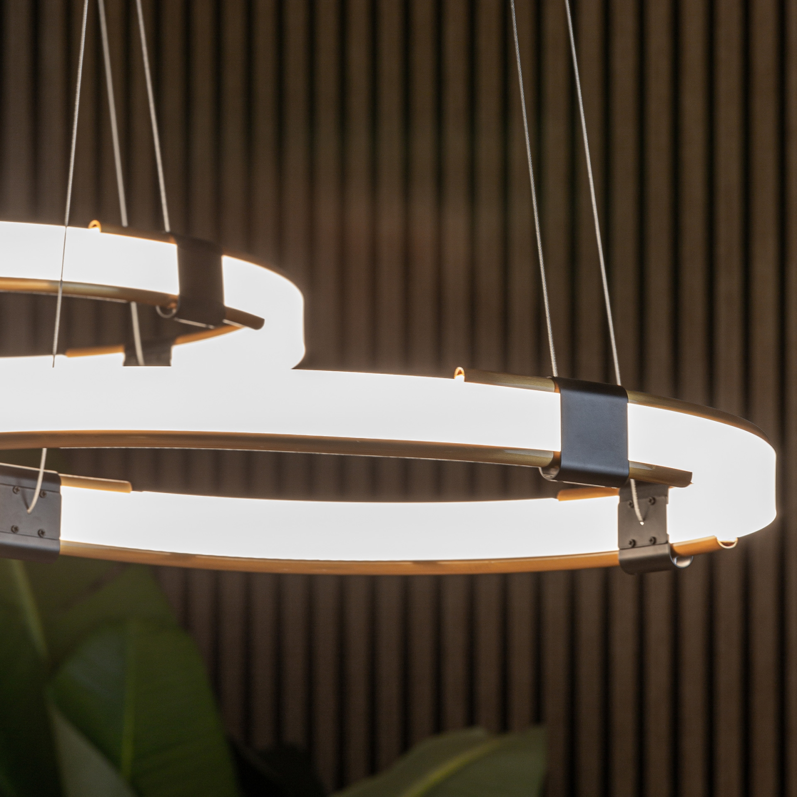 Lustra este elevabilă, permițând ajustarea înălțimii în funcție de spațiu și context, fiind potrivită pentru dining, living, birouri moderne sau proiecte HoReCa cu estetică minimalistă.