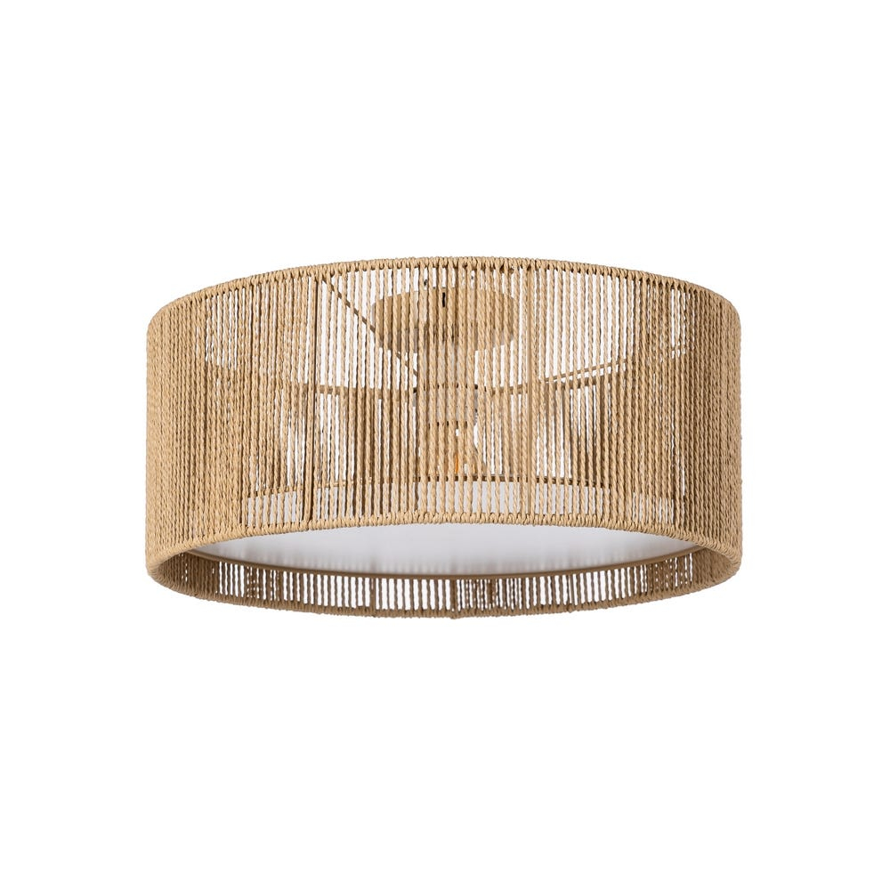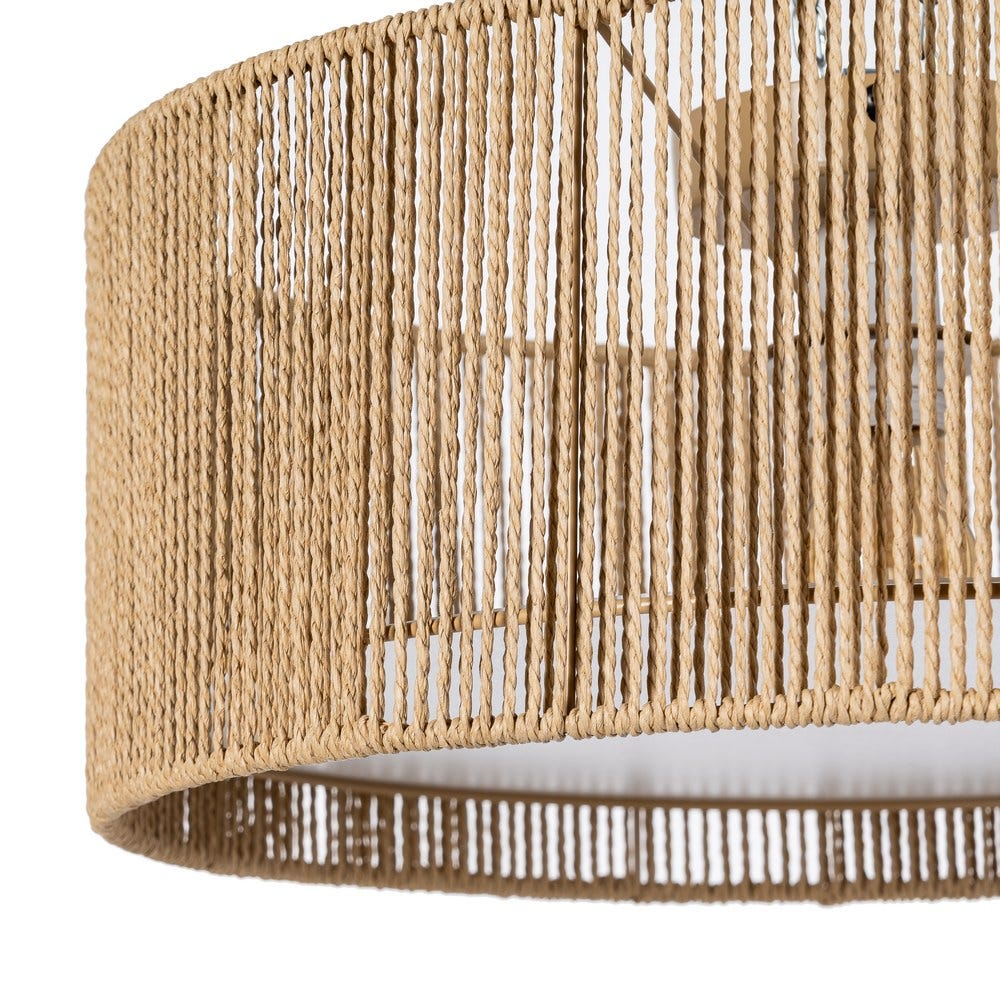 Plafonieră din sfoară de hârtie naturală cu abajur cilindric împletit pe structură metalică și difuzor inferior din polipropilenă pentru lumină uniformă — soluție practică și decorativă pentru hol, living sau dormitor.